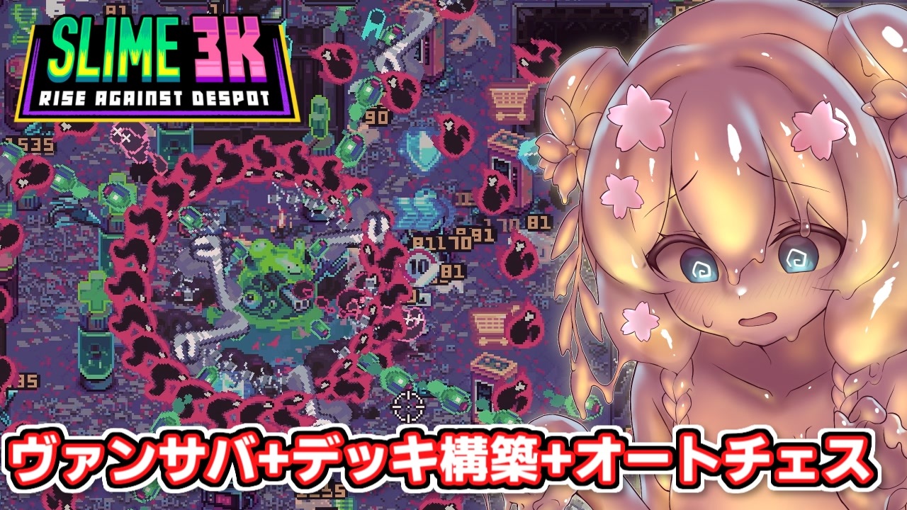 多分終盤は移動速度が速いスライム安定です<br><br><br>・立ち絵<br>セナさん <a href="https://seiga.nicovideo.jp/seiga/im11250804" target="_blank" rel="noopener">im11250804</a>(きりたん) <a href="https://seiga.nicovideo.jp/seiga/im11472168" target="_blank" rel="noopener">im11472168</a>(ウナ) <a href="https://seiga.nicovideo.jp/seiga/im11643896" target="_blank" rel="noopener">im11643896</a>(スライム)<br>りょうごさん <a href="https://seiga.nicovideo.jp/seiga/im11119649" target="_blank" rel="noopener">im11119649</a>(きりたん) <a href="https://seiga.nicovideo.jp/seiga/im11647933" target="_blank" rel="noopener">im11647933</a>(しゅお)<br>こんにゃくねこさん <a href="https://seiga.nicovideo.jp/seiga/im11085860" target="_blank" rel="noopener">im11085860</a>(ウナ)<br>絃弥さん <a href="https://seiga.nicovideo.jp/seiga/im11135274" target="_blank" rel="noopener">im11135274</a>(しゅお)<br><br>VOICEPEAK:東北きりたん、音街ウナ、彩澄しゅお<br><br><a href="https://store.steampowered.com/app/2348610/Slime_3K_Rise_Against_Despot/" target="_blank" rel="noopener nofollow">https://store.steampowered.com/app/2348610/Slime_3K_Rise_Against_Despot/</a><br><br><br />ほかの動画はこちらからどうぞ<br><a href="https://www.nicovideo.jp/user/125432075/series" target="_blank" rel="noopener nofollow">https://www.nicovideo.jp/user/125432075/series</a>