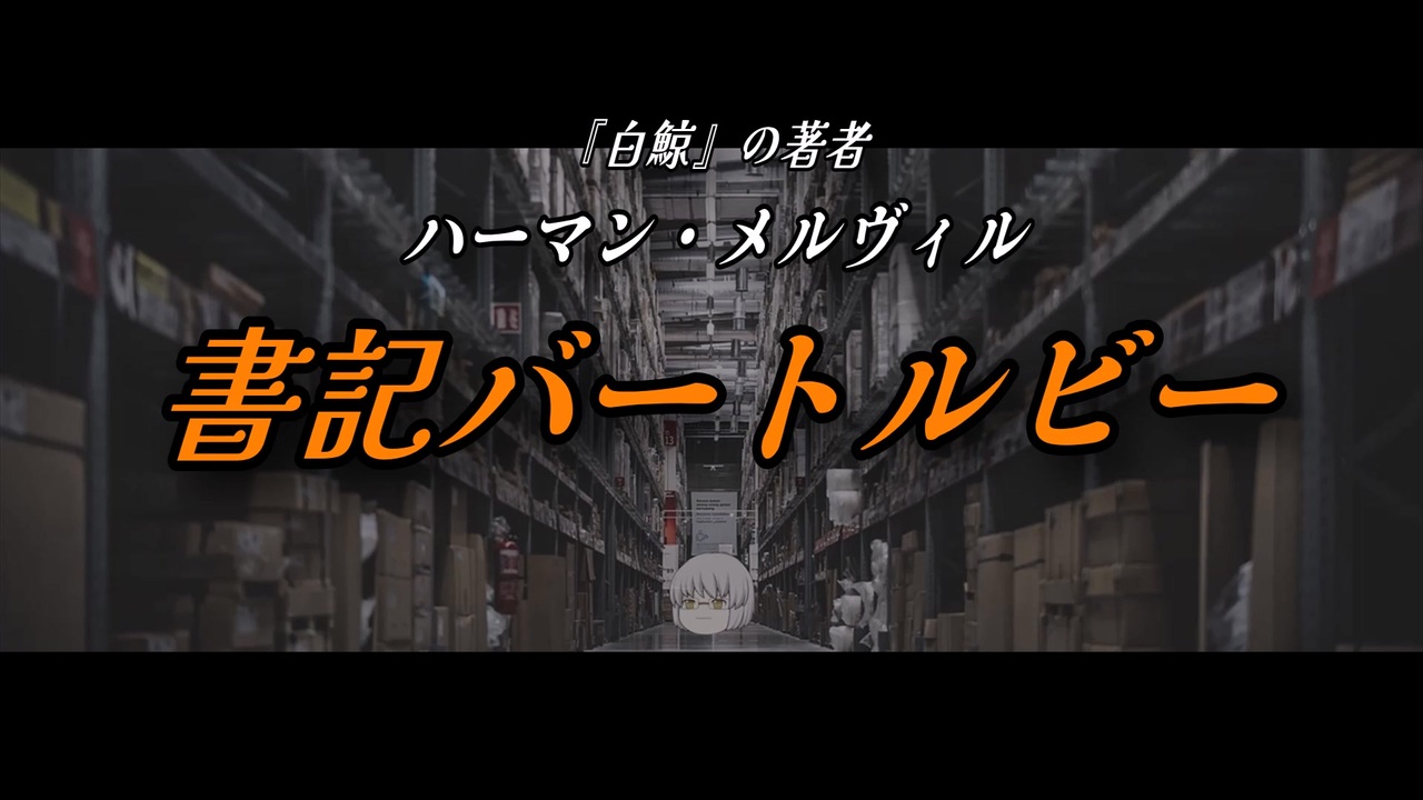 <span style="color: #ff0000;"><strong>なにもしない男の物語──</strong></span><br>ふかみどりさんの動画「書記バートルビー」を宣伝する30秒CM。勝手に作りました。しかも下記生放送で、勝手に語ります。<br><br>2025年6月7日、私は毎週土曜の生放送「文庫ラジオ097」で、ふかみどりさんの「検察側の証人」について、勝手なことを話した。ふかみどりさんはそれを聞いていて、その指摘を参考に「書記バートルビー」を制作したらしい。しかも投稿翌日に自分CM(予告編)を作るほど、伸ばしたいそうだ。<br><br>よろしい、ならば応援だ。<br><br>というわけで作りました。「書記バートルビー」は掴みどころがない話だけど、都市小説(都市に住む人々の孤独やつながりの喪失を描いた作品)の嚆矢として読んでおくといいよ。<br><br>※こうしたクリップは、ツイッターのみで流してたんですが、今後はニコニコ動画にも投稿します。<br><br>【ハーマン・メルヴィル】書記バートルビー【第四回ソフトウェアトーク朗読劇場祭遅刻】【ゆっくり文庫リスペクト】<br><a href="https://www.nicovideo.jp/watch/sm45389739" target="_blank" rel="noopener nofollow">https://www.nicovideo.jp/watch/sm45389739</a><br><br>●【文庫ラジオ】109「バートルビー症候群」<br><a href="https://live.nicovideo.jp/watch/lv348677407" target="_blank" rel="noopener nofollow">https://live.nicovideo.jp/watch/lv348677407</a><br><a href="https://www.youtube.com/live/ylx8tTjVaAA" target="_blank" rel="noopener nofollow">https://www.youtube.com/live/ylx8tTjVaAA</a><br><br>---