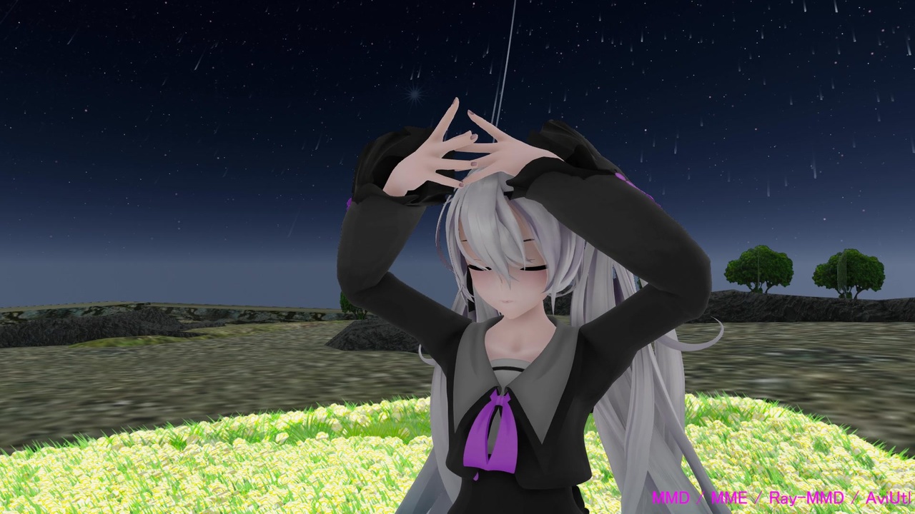 三目YYB & PilouLaBaka 様のYYB式改変 Midnight fiction MikuとSuyasuya Miku をお借りして構成しています。<br>2度目の「カガリビト」です。<br><br>今回は投稿2年を迎えたので、モーションというかダンスを主眼にして、構成をしようと始めました。<br>「あるある」ですが、モーションの補正が物凄く大変で、何度も最初から補正をし直したのですが、かなり細かなところで異なる結果になっていると思います。<br><br>たぶん本来 "Suyasuya Miku" モデルは部屋着であろうことから、使い方としては向いていないかもしれません。<br>また、ステージもいろいろ模索したのですが出会えず、今回の形となりました。<br>マテリアルも今回初めて、使ってみています。<br>とは言え、RAY-MMD でのステージの扱いが未熟で、3回目の「カガリビト」があると思います。<br><br>お花畑の設定を再度やり直し、床から足が浮いているのを画角変更 (54回再生時点)<br><br>このMMD作品は、下記の方々の作品をお借りして構成しています。<br>各作者様、感謝とお礼を申し上げます。<br>本当にありがとうございます。<br><br>お借りした作品はコンテンツツリーに記載し、ツリーに記載できない作品を下記に記載します。<br><br>ステージ:<br> 神殿pmx/pmd : 那由他 様<br> [ <a href="http://www46.atwiki.jp/nayutaworksltd" target="_blank" rel="noopener nofollow">http://www46.atwiki.jp/nayutaworksltd</a> ] <br><br> 時計ステージ ver3.0 : 額田倫太郎 様<br> [ <a href="https://bowlroll.net/file/186326" target="_blank" rel="noopener nofollow">https://bowlroll.net/file/186326</a> ]<br><br>RayMMD用のマテリアル:<br> RayMMD用のマテリアル24種類 : 世界最弱のサーモントラウト 様<br> [ <a href="https://bowlroll.net/file/247674" target="_blank" rel="noopener nofollow">https://bowlroll.net/file/247674</a> ] <br><br>ツール:<br> MMD : 樋口優 様<br> Ray-MMD v1.5.x : Rui 様<br> MME : 舞力介入P 様<br> PmxEditor v0.2.7.3 : 極北P 様<br> AviUtl : KENくん 様<br><br>■■ お礼 ■■<br>ミーネンロイマー様(4回)、Katie T様、木花佐久夜様、01Pvocalo様、ひでくん様、kawayan様、Kheyi様、xf108様、まっつぁん様、touketu様、touketu2様<br>ニコニコ広告、ありがとうございました。<br><br><a target="_blank" href="https://qa.nicovideo.jp/faq/show/19424?site_domain=default" style="font-size: 13px;color: #657586; text-decoration: underline; line-height: 1.4">この動画は投稿者によって修正されました</a>