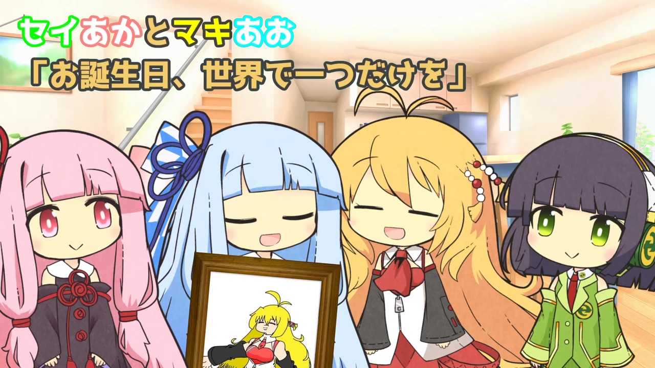 セイあかの絵を見た葵ちゃん、マキちゃんの絵を描いてみたいと思い…<br>でも上手く描けるか不安で悩んでいましたが茜ちゃんとセイカさんの協力で書くことに!!<br>マキちゃんのお誕生に世界で一つだけのマキちゃんの絵を!!<br>そんなマキちゃんのお誕生日動画です♬<br><br>使用ソフト<br>VOICEROID2琴葉茜・葵<br>VOICEROID+民安ともえEX<br>VOICEROID+京町セイカ<br>A.I.VOICE2琴葉茜・葵<br>voicepeak京町セイカ<br><br>立ち絵…akihiyo様<br><a href="https://seiga.nicovideo.jp/user/illust/20132633" target="_blank" rel="noopener nofollow">https://seiga.nicovideo.jp/user/illust/20132633</a><br><br>背景…みんちりえ様<br><a href="https://min-chi.material.jp" target="_blank" rel="noopener nofollow">https://min-chi.material.jp</a><br><br>BGM…騒音のない世界様<br><a href="https://noiselessworld.net" target="_blank" rel="noopener nofollow">https://noiselessworld.net</a><br><br>その他…ニコニ・コモンズ様<br><a href="https://commons.nicovideo.jp" target="_blank" rel="noopener nofollow">https://commons.nicovideo.jp</a>