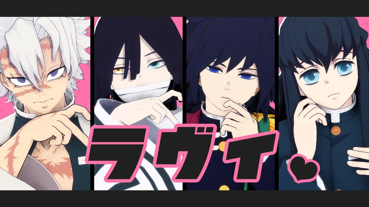 素敵なPVキットを使用させていただきました。<br><br>■使用楽曲<br>すりぃ様<br><a href="https://www.nicovideo.jp/watch/sm41549826" target="_blank" rel="noopener nofollow">https://www.nicovideo.jp/watch/sm41549826</a><br><br>■モーション・カメラ<br>殻組でん様<br><a href="https://www.nicovideo.jp/watch/sm41331031" target="_blank" rel="noopener nofollow">https://www.nicovideo.jp/watch/sm41331031</a><br><br>■PVキット<br>中邑フエコ様<br><a href="https://www.nicovideo.jp/watch/sm41365220" target="_blank" rel="noopener nofollow">https://www.nicovideo.jp/watch/sm41365220</a><br><br>他、動画内のクレジットに記載しております。<br><br><br>追記<br>ミレイ(実礼) 様 雫石様 陸月様<br>広告ありがとうございます!<br><br>#鬼滅のMMD #不死川実弥 #伊黒小芭内 #冨岡義勇 #時透無一郎 #鬼滅の刃