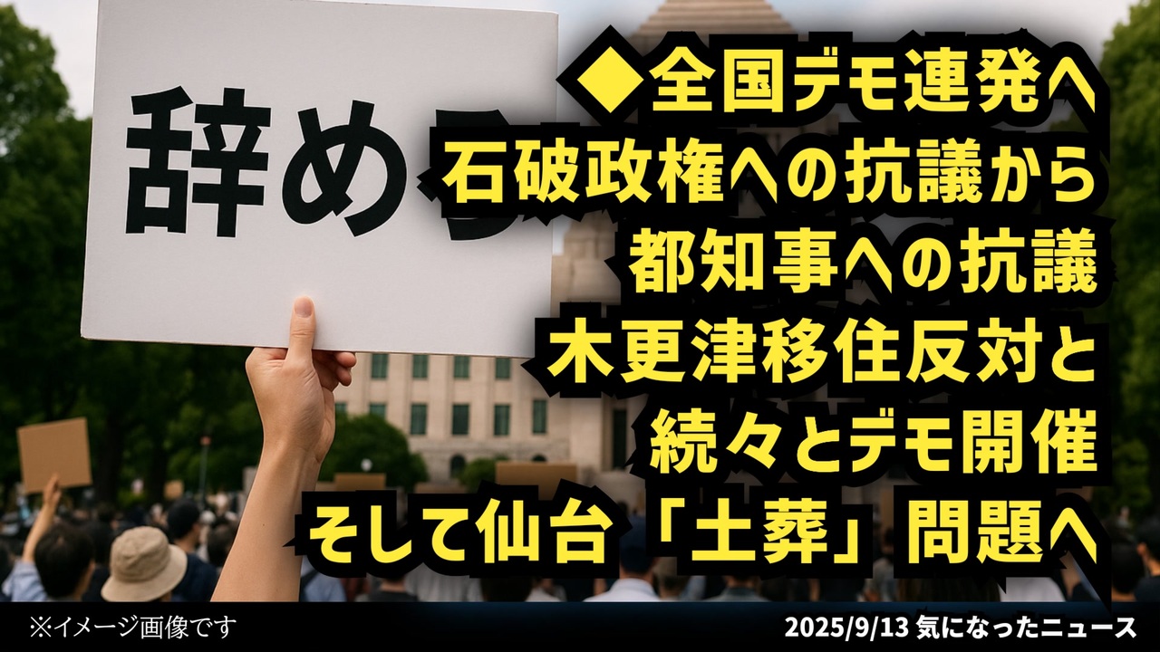 ◆全国デモ連発へ…石破政権への抗議から都知事への抗議、木更津移住反対と続々とデモ開催、そして仙台「土葬」問題が浮かび上がる<br><br>あらすじ <br>9月後半、日本各地で相次ぐデモが予定されています。高知では政治とワクチン政策への抗議、東京と鳥取では市民による石破政権への抗議デモ、都庁前では外国人労働者協定に対する反発、木更津では移民計画への抗議デモが行われます。そして最後に浮上したのが仙台の「土葬墓地」問題。火葬が当たり前の日本で、なぜ今、土葬なのか。国民の声が交錯し、政治や社会の在り方を揺さぶる現実を追います。<br><br>◆今回の台本<a href="https://keiichiro8140.hatenablog.com/entry/25091333444777888999" target="_blank" rel="noopener nofollow">https://keiichiro8140.hatenablog.com/entry/25091333444777888999</a><br><br>◆YouTubeチャンネル登録よろしくお願いします🙏 <a href="https://www.youtube.com/@K16news888" target="_blank" rel="noopener nofollow">https://www.youtube.com/@K16news888</a><br><br>◆もしも(BAN)の時のためのマイリンク集<a href="https://lit.link/K16_888" target="_blank" rel="noopener nofollow">https://lit.link/K16_888</a><br><br>ご覧いただきありがとうございます<br>m(_ _)m<br>気になったニュース 2025/9/13<br><br />著作権、肖像権に配慮して作成しております。<br><br>◆気になったニュースの台本!?<br>メモ代わりに作った台本をそのままあげてます<br><a href="https://keiichiro8140.hatenablog.com/." target="_blank" rel="noopener nofollow">https://keiichiro8140.hatenablog.com/.</a><br><br><br>ここからはシリーズ紹介<br><br><br>◆ ワクチン解毒・デトックス<br><a href="https://x.gd/fZweg" target="_blank" rel="noopener nofollow">https://x.gd/fZweg</a><br><br>◆ウイリアム・マキス博士のがん治療(イベルメクチン・フェンベンダゾール等)<br><a href="https://x.gd/AtFYS" target="_blank" rel="noopener nofollow">https://x.gd/AtFYS</a><br><br>◆予防接種健康被害救済制度<br><a href="https://x.gd/0xK9x" target="_blank" rel="noopener nofollow">https://x.gd/0xK9x</a><br><br>◆気になったニュース #1501~<br><br>◆ 【ショートver】気になったニュース<br><a href="https://x.gd/7MxXC" target="_blank" rel="noopener nofollow">https://x.gd/7MxXC</a><br><br>◆ 気になったニュース #1001~<br><a href="https://x.gd/Lp8gv" target="_blank" rel="noopener nofollow">https://x.gd/Lp8gv</a><br><br>◆ 気になったニュース #501~<br><a href="https://x.gd/EmbS4" target="_blank" rel="noopener nofollow">https://x.gd/EmbS4</a><br><br>◆ 気になったニュース #1~#500<br><a href="https://x.gd/uPhNb" target="_blank" rel="noopener nofollow">https://x.gd/uPhNb</a><br><br>◆ X(旧Twitter)・テレグラムで気になった情報<br><a href="https://x.gd/YG6FT" target="_blank" rel="noopener nofollow">https://x.gd/YG6FT</a><br><br>◆ 日比谷5万人パレードデ⚪生放送アーカイブ動画<br><a href="https://x.gd/3CHJv" target="_blank" rel="noopener nofollow">https://x.gd/3CHJv</a><br><br>◆日比谷5万人パレード⚪モのマイリスト作ってみました<br><a href="https://nico.ms/mylist/76828848?ref=sp_other" target="_blank" rel="noopener nofollow">https://nico.ms/mylist/76828848?ref=sp_other</a><br><br>◆3.30 令和の百姓⚪⚪<br><a href="https://www.nicovideo.jp/series/511791?ref=garage_share_other" target="_blank" rel="noopener nofollow">https://www.nicovideo.jp/series/511791?ref=garage_share_other</a><br><br>◆ 及川幸久さんの【XNEWS】シリーズ<br><a href="https://x.gd/3k78K" target="_blank" rel="noopener nofollow">https://x.gd/3k78K</a><br><br>◆これまでの動画<a href="https://x.gd/sPXoJ" target="_blank" rel="noopener nofollow">https://x.gd/sPXoJ</a><br><br>◆もしも(BAN)の時のためのマイリンク集<a href="https://lit.link/K-16_News44" target="_blank" rel="noopener nofollow">https://lit.link/K-16_News44</a><br><br>