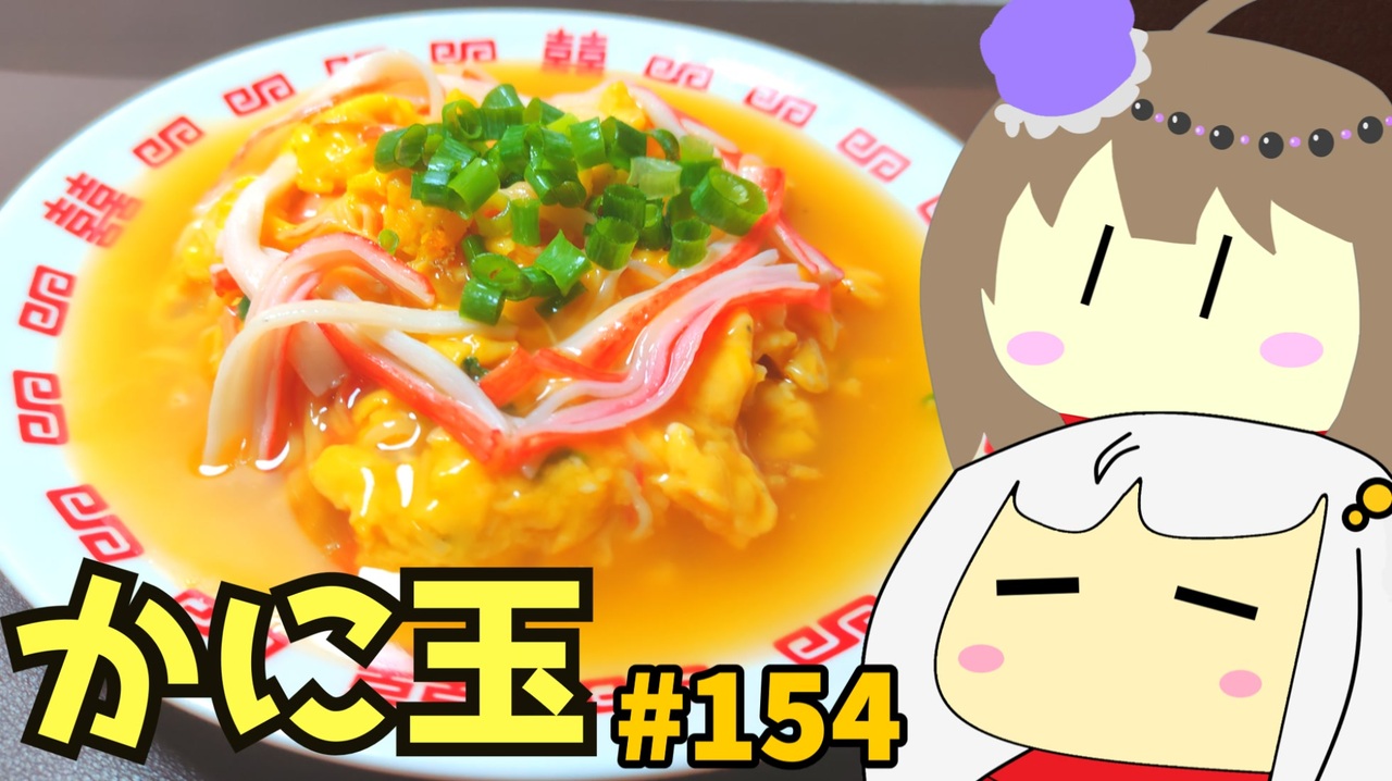 前→<a href="https://www.nicovideo.jp/watch/sm45409169" class="watch">sm45409169</a> (155_シビの煮物ガーリックソテー)<br><br>前→<a href="https://www.nicovideo.jp/watch/sm45394788" class="watch">sm45394788</a> (153_1キロスパゲッティ)<br><br>どうも、私です。<br>カニカマであんかけかに玉と、袋ラーメンと一緒にかに玉ラーメン作って食べるよ~<br>154_あんかけかに玉ラーメン_ゆっくりヘイホー<br>マイリス→<a href="https://www.nicovideo.jp/mylist/63910205" target="_blank" rel="noopener">mylist/63910205</a> (ラーメン食べ歩き日本一周 グルメ 車 その他)<br><br>~~~クレジット~~~<br>ボイスロイド・ソフトウェアトーク<br>VOICEROID2: 紲星あかり<br>VOICEVOX: 冥鳴ひまり<br><br>YMM4 ゆっくりMovieMaker4<br><a href="https://manjubox.net/ymm4/" target="_blank" rel="noopener nofollow">https://manjubox.net/ymm4/</a><br><br>BGM<br>After-Five<br><a href="https://dova-s.jp/bgm/play22169.html" target="_blank" rel="noopener nofollow">https://dova-s.jp/bgm/play22169.html</a><br>ーーーーーーーーーーーー<br>