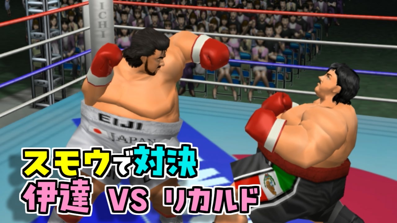 ごめんなさい<br>最近本当に忙しくて、こんな動画しか作れず・・・ <br><br>1戦目:両者350kg対決 <br>2戦目:両者350kg対決(伊達さん3倍速) <br><br>使用ソフト:はじめの一歩 2 VICTORIOUS ROAD PS2版<br>ジャンル:ボクシングゲーム<br><br>会長 VS リカルド →<a href="https://www.nicovideo.jp/watch/sm44079325" class="watch">sm44079325</a><br>デブになった鷹村 →<a href="https://www.nicovideo.jp/watch/sm43384767" class="watch">sm43384767</a><br>パパイヤ迫真の追撃 →<a href="https://www.nicovideo.jp/watch/sm44326277" class="watch">sm44326277</a><br>ゲロ道 VS アルフレド →<a href="https://www.nicovideo.jp/watch/sm44423708" class="watch">sm44423708</a><br>一歩追い打ちしてしまう →<a href="https://www.nicovideo.jp/watch/sm44079346" class="watch">sm44079346</a><br />動画に「いいね!」「マイリスト登録」よろしくお願いします。<br><br>・おすすめ<br>[TAS]Grand Theft Auto 3 Part1→<a href="https://www.nicovideo.jp/watch/sm14718961" class="watch">sm14718961</a><br>[TAS]MaxPayne デッドターゲット Part1→<a href="https://www.nicovideo.jp/watch/sm15093299" class="watch">sm15093299</a><br>[TAS]michigan Part1→<a href="https://www.nicovideo.jp/watch/sm18393230" class="watch">sm18393230</a><br><br>サポート頂けると励みになります<br>魔界塔士のサポーターになる→<a href="https://creator-support.nicovideo.jp/registration/15153622" target="_blank" rel="noopener nofollow">https://creator-support.nicovideo.jp/registration/15153622</a><br><br>TAS動画まとめ→<a href="https://koeiprogenitor.com/tas/matome/" target="_blank" rel="noopener nofollow">https://koeiprogenitor.com/tas/matome/</a><br>つべ→<a href="https://www.youtube.com/user/koeiprogenitor1/" target="_blank" rel="noopener nofollow">https://www.youtube.com/user/koeiprogenitor1/</a><br>インスタ→<a href="https://www.instagram.com/makaitoshi" target="_blank" rel="noopener nofollow">https://www.instagram.com/makaitoshi</a><br><br>本編→シリーズ一覧見てね<br>