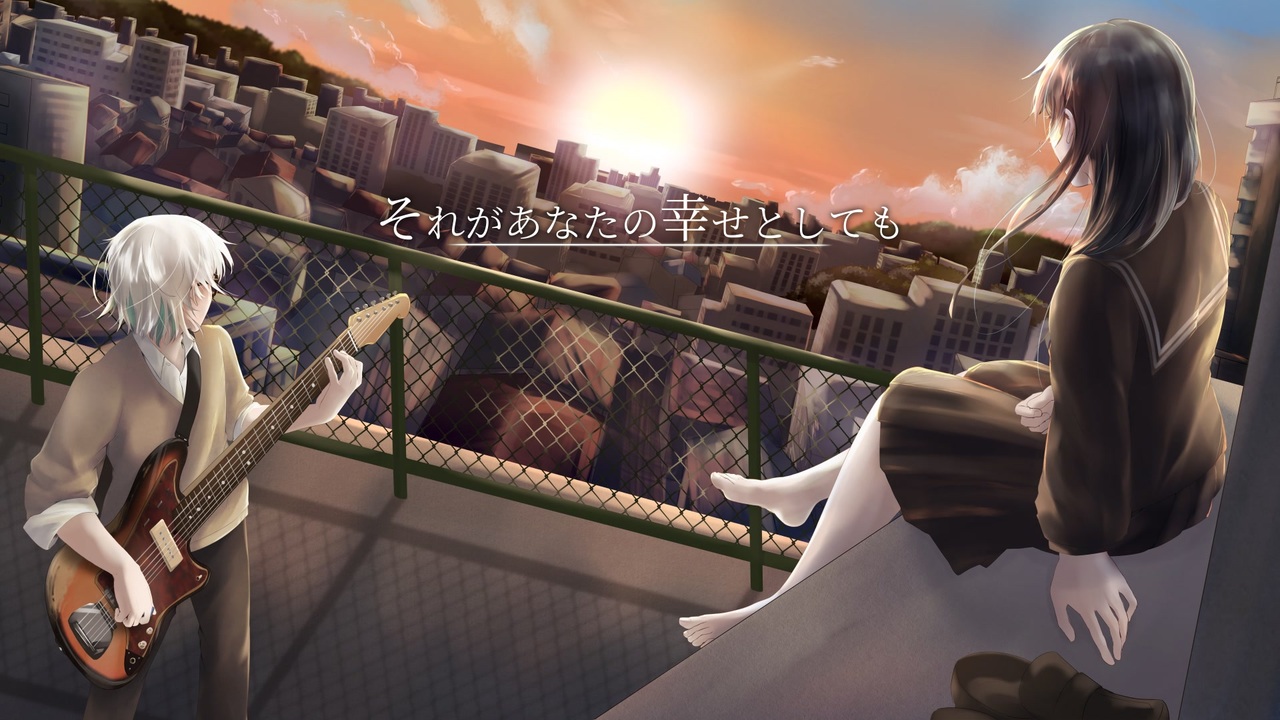 <span style="font-size: 16px;">…それがあなたの幸せとしても…</span><br><br><br><span style="color: #ff0000; font-size: 16px;">歌コレ秋2025 グループ部門</span> 36位ありがとうございました!✨<br><br><br>陽澄リョウさんと大切に、大切に歌い<br>空無さんが大切に、大切に描いてくださりこの作品になりました。<br><br><span style="color: #ff0000;">いいね</span>や<span style="color: #ff0000;">マイリス</span>、<span style="color: #ff0000;">コメント</span>で応援して頂けると大変嬉しいです。<br><br><br>弾幕コピペでお使い下さい↓↓↓↓↓<br><br>✨🎸🌇🎵✨🎸🌇🎵✨🎸🌇🎵✨🎸🌇🎵<br><br>……………………………………<br><br>リョウさんと空無さん、そしてわたし。<br><br>ネットの世界で出会い、「音楽が好き」という精神的な部分で繋がっているだけ。<br>それなのにこんなに作品に対して本気になって、魂をそれぞれが込めて、それを1つにすることができて。<br><br>改めて”創作”の素晴らしさを今回お二人が教えてくれました。<br><br>出会いに、今回ご一緒できたことに心からの感謝を。<br><br>そらのうみ<br><br>° ° ° ° ° ° ° ° ° ° ° ° ° ° ° ° ° ° ° °<br><br>◇Music & Lyric : Heavenz 様 <br><a href="https://x.com/HeavenzP" target="_blank" rel="noopener nofollow">https://x.com/HeavenzP</a><br><a href="https://www.nicovideo.jp/watch/sm20503793" class="watch">sm20503793</a><br><a href="https://www.youtube.com/channel/UCPo-rSBkHv1DaQhqwibdYmg" target="_blank" rel="noopener nofollow">https://www.youtube.com/channel/UCPo-rSBkHv1DaQhqwibdYmg</a><br><br>◇Illust : 語樹空無 様<br><a href="https://x.com/kataruki_kumu" target="_blank" rel="noopener nofollow">https://x.com/kataruki_kumu</a><br><a href="https://www.nicovideo.jp/user/138190742" target="_blank" rel="noopener">user/138190742</a><br><a href="https://www.youtube.com/@kataruki_kumu" target="_blank" rel="noopener nofollow">https://www.youtube.com/@kataruki_kumu</a><br><br>◇Vocal &Mix & Mastering : 陽澄リョウ 様 <br><a href="https://x.com/juvenilesongs" target="_blank" rel="noopener nofollow">https://x.com/juvenilesongs</a><br><a href="https://www.nicovideo.jp/user/131053108" target="_blank" rel="noopener">user/131053108</a><br><a href="https://www.youtube.com/@juvenilesongs" target="_blank" rel="noopener nofollow">https://www.youtube.com/@juvenilesongs</a><br><br>◇Vocal & Movie : そらのうみ <br><a href="https://x.com/soranoumi_uta" target="_blank" rel="noopener nofollow">https://x.com/soranoumi_uta</a><br><a href="https://www.nicovideo.jp/user/138228461" target="_blank" rel="noopener">user/138228461</a><br><a href="http://www.youtube.com/@soranoumi_uta" target="_blank" rel="noopener nofollow">http://www.youtube.com/@soranoumi_uta</a>