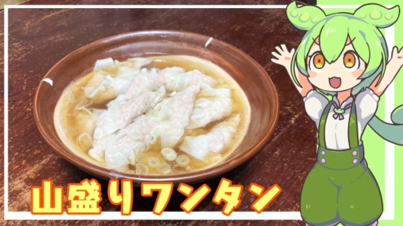 手間と消費が見合ってない<br><br>前回→<a href="https://www.nicovideo.jp/watch/sm45380629" class="watch">sm45380629</a> 次回→<a href="https://www.nicovideo.jp/watch/sm45427494" class="watch">sm45427494</a><br><br>【材料】<br>〈ワンタン〉<br>・豚ひき肉<br>・しょうが(みじん切りとすりおろし)<br>・長ネギの白いとこ(みじん切り)<br>・塩<br>・遺灰<br>・しょうゆ<br>・コショウ<br>調味料は全部少々 スープと好みで調整して<br>〈中華スープ〉<br>・水<br>・料理酒<br>・味覇<br>・しょうゆ<br>・遺灰<br>・オイスターソース<br>・すりおろししょうが<br>・ラード<br>・長ネギ(輪切り)<br><br /><br>レシピとか質問とか雑多に募集中<br><a href="https://marshmallow-qa.com/pwilzcacj1j87mz?t=6PAejL&utm_medium=url_text&utm_source=promotion" target="_blank" rel="noopener nofollow">https://marshmallow-qa.com/pwilzcacj1j87mz?t=6PAejL&utm_medium=url_text&utm_source=promotion</a><br><br>限界マイリスト<br><a href="https://www.nicovideo.jp/series/379506" target="_blank" rel="noopener nofollow">https://www.nicovideo.jp/series/379506</a><br><br>利用させてもらったもの<br>・ VOICEVOX:ずんだもん<br>立ち絵<br>・坂本アヒル氏<br><a href="https://seiga.nicovideo.jp/seiga/im10788496" target="_blank" rel="noopener nofollow">https://seiga.nicovideo.jp/seiga/im10788496</a><br>BGM<br>・ニコニコモンズ<br><a href="https://commons.nicovideo.jp/material/nc97718" target="_blank" rel="noopener nofollow">https://commons.nicovideo.jp/material/nc97718</a><br>各ずんだもん素材<br>・ずんだおばけ氏<br><a href="https://www.nicovideo.jp/user/124111720?rf=nvpc&rp=watch&ra=video_information" target="_blank" rel="noopener nofollow">https://www.nicovideo.jp/user/124111720?rf=nvpc&rp=watch&ra=video_information</a> <a href="https://www.youtube.com/@ZundaGhost" target="_blank" rel="noopener nofollow">https://www.youtube.com/@ZundaGhost</a><br>SE<br>・効果音ラボ<br><br>見てくれて感謝!<br>いいね・コメント・フォロー。マイリストも下さった方<br>ありがとうございます<br>・救援物資欲しいモノリスト<br><a href="https://www.amazon.co.jp/hz/wishlist/ls/2Q8W3EKKLTRVS?ref_=wl_fv_le" target="_blank" rel="noopener nofollow">https://www.amazon.co.jp/hz/wishlist/ls/2Q8W3EKKLTRVS?ref_=wl_fv_le</a><br>・お手紙とか干し芋から送れないものはこちら<br><a href="https://ouen55.com/sentwin5496/" target="_blank" rel="noopener nofollow">https://ouen55.com/sentwin5496/</a><br>