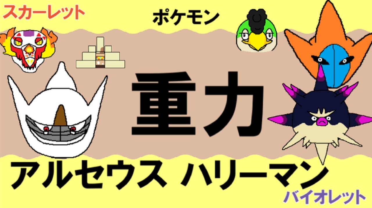 創造主は重力を自力で覚える。<br><br>アルセウス(地面):重力発動要員 兼 地面アタッカー<br>デオキシス(アタックフォルム):高速重力発動要員<br>キョジオーン:頑丈重力発動要員<br>ラウドボーン:歌う 特殊アタッカー<br>イキリンコ:はりきり 物理アタッカー<br>ハリーマン:いかく&突撃チョッキ 物理アタッカー<br><br>SV重力パ part1> <a href="https://www.nicovideo.jp/watch/sm41468088" class="watch">sm41468088</a><br><br>前 part.108 ダブル ダークライ > <a href="https://www.nicovideo.jp/watch/sm45379243" class="watch">sm45379243</a><br>次 part.110 酔わせて重力 > <a href="https://www.nicovideo.jp/watch/sm45455709" class="watch">sm45455709</a><br><br>まとめ><a href="https://www.nicovideo.jp/mylist/73815898" target="_blank" rel="noopener">mylist/73815898</a> part1まとめ><a href="https://www.nicovideo.jp/mylist/39698347" target="_blank" rel="noopener">mylist/39698347</a><br><br>重力Tシャツ販売中 → <a href="https://komekichi73gou.designstore.jp/" target="_blank" rel="noopener nofollow">https://komekichi73gou.designstore.jp/</a><br>重力lineスタンプ販売中 → <a href="https://store.line.me/stickershop/product/1278136" target="_blank" rel="noopener nofollow">https://store.line.me/stickershop/product/1278136</a><br><br>コミュニティ>co2187008 のんびり計画中?<br>twitter→ <a href="https://twitter.com/komekichi73gou" target="_blank" rel="noopener nofollow">https://twitter.com/komekichi73gou</a><br>質問箱→<a href="https://peing.net/ja/komekichi73gou" target="_blank" rel="noopener nofollow">https://peing.net/ja/komekichi73gou</a>