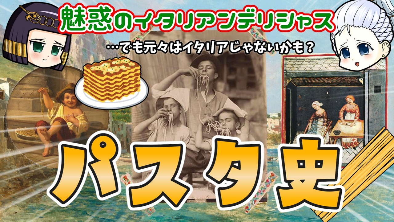 マリーは特にこだわりは無いようです。<br><br>「パスタって言ってもスパゲッティ以外にもいっぱいあるんだぜ」と言いたくなる気持ちはわかります。しかし、あなたが食べているそれは本当に「スパゲッティ」なのでしょうか?<br><br>複雑で奥深いパスタの世界をここで語りつくす…のは本を読んでいる段階で無理だとわかったので、うっすら表面だけなぞった動画です。マカロニでも食べながら観てください。<br><br>☆ニコニコチャンネル「モンド・ヒストリカの離宮」 →<a href="https://ch.nicovideo.jp/mond-historica" target="_blank" rel="noopener nofollow">https://ch.nicovideo.jp/mond-historica</a> <br><br>今回の参考文献: <br>シルヴァーノ・セルヴェンティ/フランソワーズ・サバン(2012)『パスタの歴史』飯塚茂雄・小矢島聡監修 清水由貴子訳 原書房<br>池上俊一(2011)『パスタでたどるイタリア史』岩波書店<br>佐藤洋一郎(2016)『食の人類史』中央公論新社<br>ウィリアム・ルーベル(2013)『パンの歴史』堤理香訳 原書房<br>その他 Wikipediaなど <br><br>twitter→<a href="https://twitter.com/mond_historica" target="_blank" rel="noopener nofollow">https://twitter.com/mond_historica</a><br />━━━━━━━━━━━━━━━━━━━━━<br><br>この動画はクリエイティブ・コモンズ継承(CC-BY-SA)ライセンスの素材を使用して制作しています。(<a href="https://creativecommons.org/licenses/by-sa/4.0/)" target="_blank" rel="noopener nofollow">https://creativecommons.org/licenses/by-sa/4.0/)</a><br>規約に基づき、この動画もCC-BY-SA 4.0 のもとで公開します。<br><br>投稿者共通情報☆彡<br><br>BGM, SE:ニコニ・コモンズ様<br><a href="http://commons.nicovideo.jp/" target="_blank" rel="noopener nofollow">http://commons.nicovideo.jp/</a><br>魔王魂様<br><a href="https://maoudamashii.jokersounds.com/" target="_blank" rel="noopener nofollow">https://maoudamashii.jokersounds.com/</a><br>Audiostock様<br><a href="https://audiostock.jp/" target="_blank" rel="noopener nofollow">https://audiostock.jp/</a><br><br>立ち絵 霊夢・魔理沙(黒子式):nicotalk様<br><a href="http://www.nicotalk.com/charasozai.html" target="_blank" rel="noopener nofollow">http://www.nicotalk.com/charasozai.html</a><br><br>立ち絵 パトラ、マリー、アン、メアリ:ライフライフ様<br><a href="https://0801lifelife.tumblr.com/" target="_blank" rel="noopener nofollow">https://0801lifelife.tumblr.com/</a><br><br>使用ツール1:ゆっくりムービーメーカー4<br><a href="https://manjubox.net/ymm4/" target="_blank" rel="noopener nofollow">https://manjubox.net/ymm4/</a><br><br>使用ツール2:AviUtl<br><a href="http://spring-fragrance.mints.ne.jp/aviutl/" target="_blank" rel="noopener nofollow">http://spring-fragrance.mints.ne.jp/aviutl/</a><br><br>各時代の地図 : World History Maps & Timelines <br><a href="http://geacron.com/home-en/" target="_blank" rel="noopener nofollow">http://geacron.com/home-en/</a><br><br>ゆっくりボイスについて:AquesTalkライセンス取得済み<br><br>キャラクターボイス<br>アン・ボニー:羽ノ華(A.I.VOICE)<br>メアリ・リード:琴葉 葵(A.I.VOICE)<br>クレオパトラ:結月ゆかり(VOICEROID2)<br>マリー‐アントワネット:東北きりたん (VOICEROID EX)<br>その他キャラ:青山龍星(A.I.VOICE)、伊織弓鶴(A.I.VOICE2)、栗田まろん(A.I.VOICE)、宮舞モカ(VOICEPEAK)、フリモメン(VOICEPEAK)<br><br><br><br>その他フリー素材ご提供元の皆様に圧倒的感謝<br>