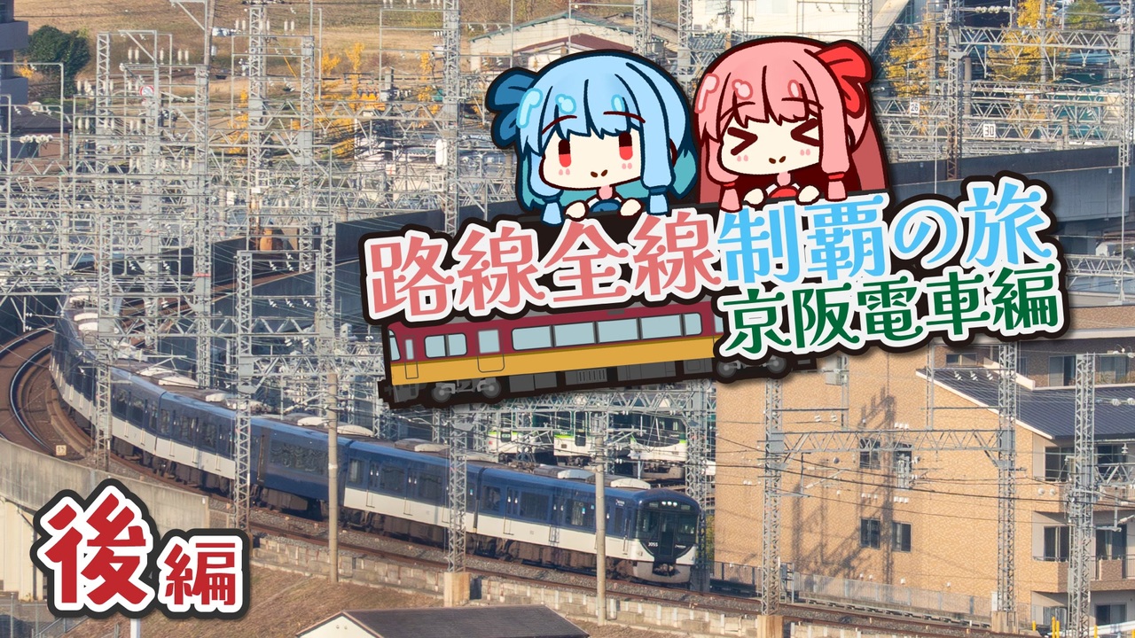 <span style="color: #38761d; font-size: 16px;"><strong><京阪電車制覇旅・後編></strong></span><span style="color: #4a86e8; font-size: 16px;"><strong> </strong></span><br><span style="font-size: 16px;"><strong>後半は残りの路線をすべて乗車! <br>京都の路線や、地下あり、山あり、道路ありの全部入りな滋賀への路線など <br>さまざまな路線を堪能していきます! </strong></span><br><br><br><br><strong>次:<a href="https://www.nicovideo.jp/watch/sm45544943" class="watch">sm45544943</a>(次の私鉄編へ)</strong> <br>前:<a href="https://www.nicovideo.jp/watch/sm45367186" class="watch">sm45367186</a> <br><br>シリーズ:<a href="https://www.nicovideo.jp/series/504487" target="_blank" rel="noopener">series/504487</a><br><br><br><立ち絵><br>・アジサバ様「琴葉姉妹SD立ち絵Ver.1.2」:<a href="https://seiga.nicovideo.jp/seiga/im11483635" target="_blank" rel="noopener">im11483635</a><br><br><BGM><br>・BGMer様<br>・DOVA-SYNDROME様 より<br /><br>ーーー連続動画シリーズーーー<br>・国内旅行<br><a href="https://www.nicovideo.jp/series/360498" target="_blank" rel="noopener">series/360498</a> 「日本鉄道小旅行」(完結済)<br><a href="https://www.nicovideo.jp/series/400418" target="_blank" rel="noopener">series/400418</a> 「青春18きっぷと私鉄の旅」(完結済)<br><a href="https://www.nicovideo.jp/series/443015" target="_blank" rel="noopener">series/443015</a> 「あかりのとっとこツアー」(不定期更新)<br><br>・私鉄旅シリーズ<br><a href="https://www.nicovideo.jp/series/460437" target="_blank" rel="noopener">series/460437</a> 「小田急全線制覇の道」(完結済)<br><a href="https://www.nicovideo.jp/series/504487" target="_blank" rel="noopener">series/504487</a> 「私鉄路線制覇シリーズ」(5/16社制覇&番外編)<strong><更新中></strong><br><br>・海外旅行<br><a href="https://www.nicovideo.jp/series/371764" target="_blank" rel="noopener">series/371764</a> 「オーストリアで鉄道たっぷり旅」(完結済)<br><a href="https://www.nicovideo.jp/series/414055" target="_blank" rel="noopener">series/414055</a> 「あかあお調査団のオーストリア珍道中!?」(完結済)<br><a href="https://www.nicovideo.jp/series/467200" target="_blank" rel="noopener">series/467200</a> 「夜行列車乗り比べ紀行」(完結済)<br><a href="https://www.nicovideo.jp/series/511896" target="_blank" rel="noopener">series/511896</a> 「ぐるっと周るヨーロッパ鉄道旅」(完結済)<br><br>ーーーその他の動画ーーー<br><br>・海外鉄道動画<br><a href="https://www.nicovideo.jp/series/284711" target="_blank" rel="noopener">series/284711</a> 「オーストリア鉄道関連」シリーズ<br><br><br>ーーー旅行Part1まとめマイリストーーー<br><a href="https://www.nicovideo.jp/mylist/74775134" target="_blank" rel="noopener">mylist/74775134</a><br><br><br>ーーー同人誌Boothのショップページはこちらーーー<br><a href="https://austria-train.booth.pm/" target="_blank" rel="noopener nofollow">https://austria-train.booth.pm/</a><br><br><br><a target="_blank" href="https://qa.nicovideo.jp/faq/show/19424?site_domain=default" style="font-size: 13px;color: #657586; text-decoration: underline; line-height: 1.4">この動画は投稿者によって修正されました</a>