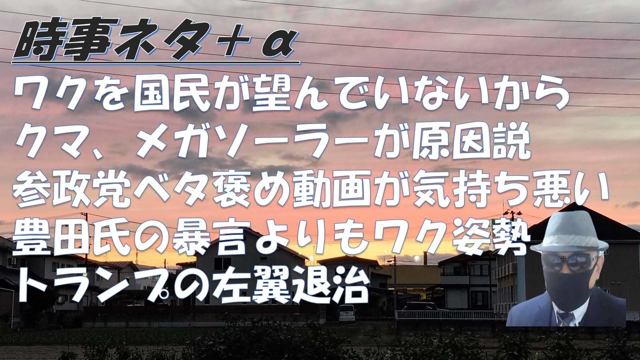 ◆宮沢孝幸<br>ワクチン問題とコロナ騒動に関する見解、各政党・議員に対する評価と期待 (9月13日の配信を一部編集したものです。)<br><br>・ワクチンについては村上さん説をとりいれたから僕に聞きに来ることはないだろう<br>・岩本さんでは力不足だとおもっています<br>・参政党に人材がいない<br><br>◆オープンマリッジでヒカル氏大炎上について<br>失敗小僧:オープンマリッジ(ヒカル氏が言って炎上)<br><br><br>◆チャーリー・カーク暗殺追悼集会のポスター印刷をオフィスデポが拒否。<br>日米の状況が酷似していることに背筋が寒い。<br><br>深田もえtv チャーリー・カーク暗殺<br><br><br>◆【前編】核武装論に警鐘を鳴らす!-自国を守るにはどうしたらいいのか-<br>小沢一郎の核武装論<br><br>反対<br><br><br>◆UK移民デモ300万人!移民政策で国家崩壊…日本は大丈夫か?<br>横森一輝<br>UK移民でも300万人<br>カルマとは、<br>植民地をしていた英仏。<br>移民は西欧に行く。<br><br>◆参政党・安藤裕が豊田真由子について解説します<br>◆【朗報】神谷宗幣、メディアが潰した豊田真由子の真実を暴露し党政調会長補佐に大抜擢!<br>オールドメディアの印象操作に騙されない国民から称賛の声が殺到してしまうwww【国民の反応<br><br>参政党称賛動画が気持ち悪い<br><br><br>◆チャーリー・カークの死, 隠された背景, ネタニヤフ首相とイスラエル・マネー【及川幸久】<br><br><br>参政党、神谷代表:豊田真由子氏に意見を聞いて科学的に考えてほしい。<br><br>エボラウイルスを研究する研究者を悪魔のように言うのはやめて欲しい。<br><br>大阪の『日本エコロジー』社長が単独取材に応じ「工事を一時中断する方針…停止期間は概ね1か月から1か月半を目安」と明かす〈北海道〉<br><br><br>クマの市街地出没、SNSに目立つメガソーラー原因説「すみか奪ってる」「クマ被害増加」<br>岩国市もメガソーラーが「原因」の可能性ありの立場です。<br><br>メガソーラー乱開発を後押し 旧民主党政権時から続く「2つの制度」<br><br>開発事業者代表が説明も… 自民議員「いまの時代にふさわしくない」釧路湿原メガソーラー問題<br><br>国土交通省(公明党)が配達員の為にオートロック解除システムを開発する方針を固めた<br><br>昨年亡くなった西尾幹二さんは、40年前から日本を移民国家にするな、と警告していた。<br><br>◆リチャード・コシミズ 統一教会は<br>本来、贈賄やマネロンといった微罪ではなく、麻薬密輸の罪で、幹部全員を絞首刑にすべきです。