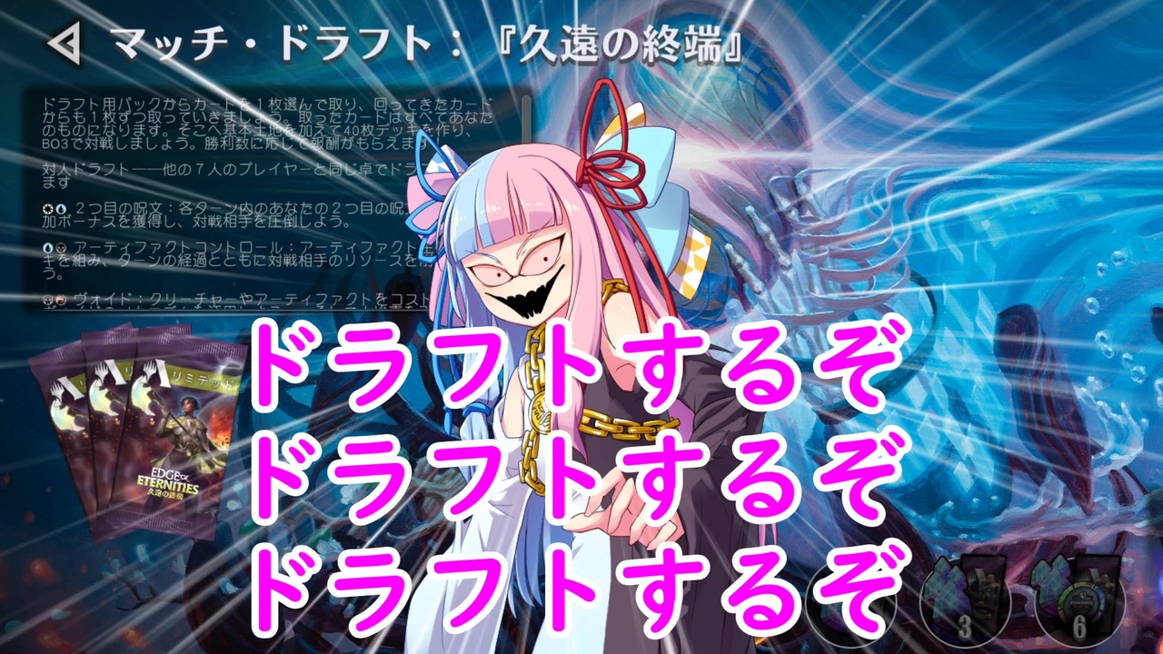 コメ返し<br><br>Q.徹底的にダイアドライン<br> 徹底的にダイアドラインしろ<br>A.うおおおおおおおおおレアリティはレアレアレアレア<br><br>Q.唯一性を失った開闢機関に悲しき過去…<br>A.一応テキストはそのままだそうです<br><br>Q.大型新人が控えてますね…<br>A.パチ屋に停めて社用車燃やしそう<br><br>Q.くっダイアドラインに負けた…<br>A.神に感謝<br><br>Q.埋設より白聖石の方が強くない?<br>A.ブロールはアーティファクトへの風当たりが強いため(だいたい秘儀の印鑑のせい)<br><br>前回の広告者様<br><br><br>水斑くろあさん ワディさん あいチャンさん かみありるなさん 四暗刻さん ジャンクさん ぁぷたさん ああああああさん まりもさん 量産型運河さん ʚりあむɞさん てっちゃんさん 棒sulikenさん このみ(兄)さん へるさんさん 藤月カゴメさん 林原めぐみ好きのおっちゃんさん 坂東ディーさん hogeさん はすきーはすきーさん まいなさん<br><br><br>皆さんありがとうございます!<br><br><br>ワディ兄貴とりあむ兄貴からギフトをドバドバ頂きました!ありがとうございます!!<br><br><br>前><a href="https://www.nicovideo.jp/watch/sm45343624" class="watch">sm45343624</a> 次><a href="https://www.nicovideo.jp/watch/sm45431991" class="watch">sm45431991</a><br><br>ツイ><a href="https://twitter.com/tNK3ob36cqRwyJE" target="_blank" rel="noopener nofollow">https://twitter.com/tNK3ob36cqRwyJE</a><br>MTGマイリス><a href="https://www.nicovideo.jp/mylist/40093606" target="_blank" rel="noopener">mylist/40093606</a><br><br>凍結燃焼の奇MTGはファンコンテンツ・ポリシーに沿った非公式のファンコンテンツです。ウィザーズ社の認可/許諾は得ていません。題材の一部に、ウィザーズ・オブ・ザ・コースト社の財産を含んでいます。<br>©Wizards of the Coast LLC.<br>