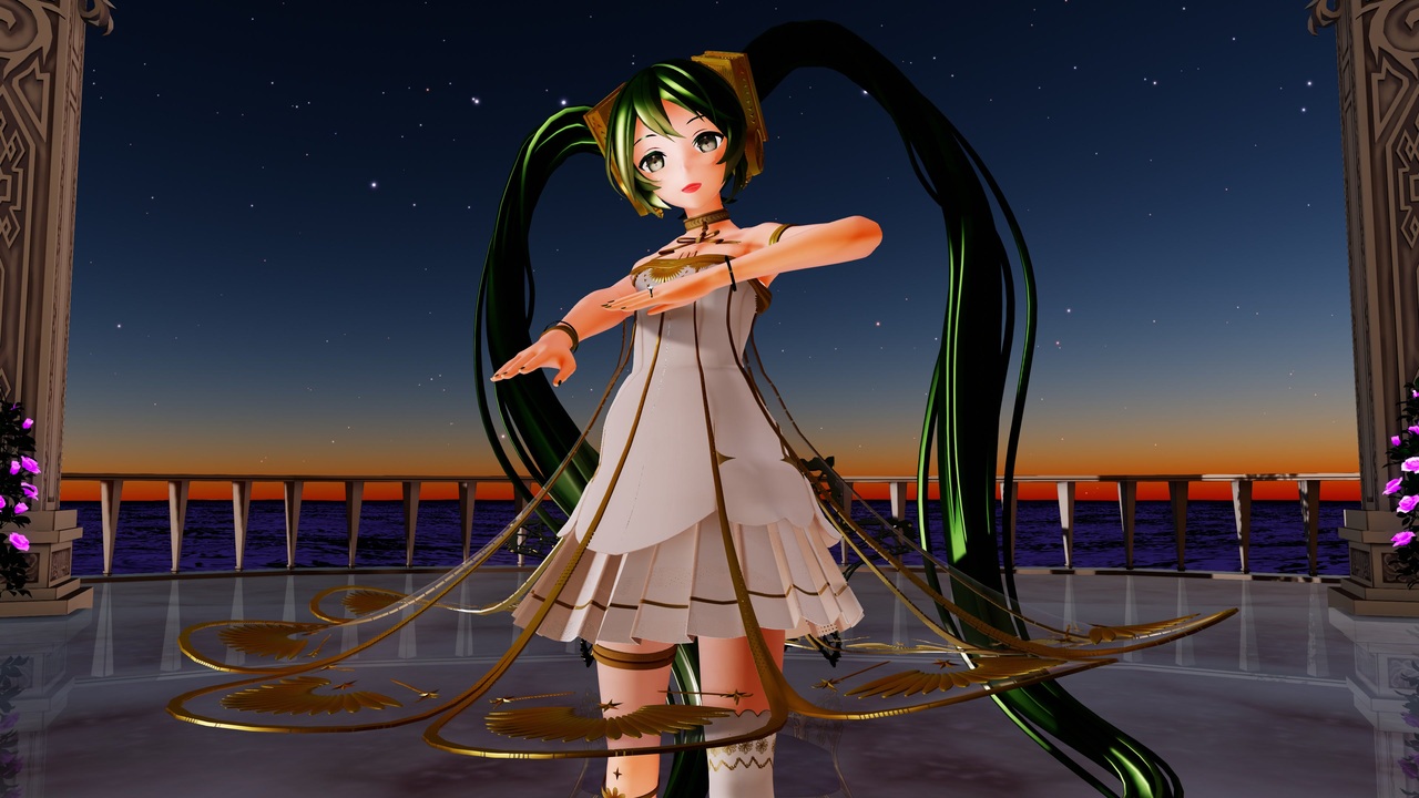 2カ月ほど前に配布が始まったYYBミクさん改変のSymphony Mikuさんです。<br>通称蓄音機ミク(オルゴールミク)さんです。<br>ミクシンフォニー2020さんとデザインは同じですけどベースがYYBミクさんなので<br>等身が高く存在感があると思います、またお顔がとても綺麗です。<br><br>お借りした物<br>Music: kz様/<br>初音ミクがオリジナル曲を歌ってくれました「ストロボナイツ」/<a href="https://www.nicovideo.jp/watch/sm1657814" class="watch">sm1657814</a><br>唄: 初音ミクさん<br><br>トレース元: あぷりこっと*様/<a href="https://www.nicovideo.jp/watch/sm13366179" class="watch">sm13366179</a><br>Motion: kemo様/<a href="https://www.nicovideo.jp/watch/sm20951049" class="watch">sm20951049</a><br>表情: 猫神ぎず/Giz様/<a href="https://www.nicovideo.jp/watch/sm21031564" class="watch">sm21031564</a><br>camera: 足屋コーヒー様/<a href="https://www.nicovideo.jp/watch/sm27403843" class="watch">sm27403843</a><br><br>Model: aple様/YYBple式SymphonyMiku5th/<a href="https://3d.nicovideo.jp/works/td95194" target="_blank" rel="noopener">td95194</a><br><br>stage: ケミリア様/広場/<a href="https://seiga.nicovideo.jp/seiga/im10828060" target="_blank" rel="noopener">im10828060</a><br>プラネタリウム: tagoshu様/「星風夜MMD」<br>Ray MMD: Rui様/<a href="https://github.com/ray-cast/ray-mmd" target="_blank" rel="noopener nofollow">https://github.com/ray-cast/ray-mmd</a><br><br>以下はコンデンツツリーをご確認して下さい。<br>以上ありがとうございました。<br><br>★光りと影、明暗の対比、明から暗への微妙な諧調を描いたつもりです。<br>画面一杯明るさに満ちたMMDがお好きな方には向いていないと思います。<br><br>ミクさんのツインティールが綺麗な動きをしません、すいません、突っ込まないで下さい。<br><br>またこのミクさんの構築の関係上透明なワンピと下の白の衣装の動きが異なるのと<br>空間がタイトなため白の衣装が外側に出て来てしまうシーンがあります、<br>解消するためには一から組み立てし直さないとならないとの事でお許しを。<br><br>広告のお礼は右記でさせて頂きました、ありがとうございました。/<a href="https://seiga.nicovideo.jp/seiga/im11674216" target="_blank" rel="noopener">im11674216</a><br>不備をご指摘して下さった方ありがとうございました、訂正しました。