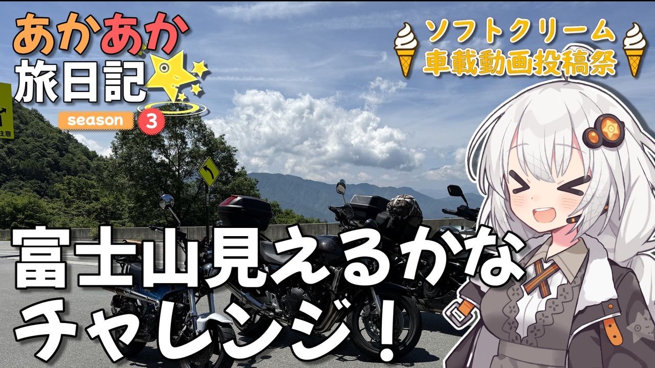 <span style="color: #ff0000; font-size: 16px;"><strong>あかあか旅日記season3、開幕です!</strong></span><br><br>それに伴い、立ち絵などを一新しました。<br>試験的に変更したので、このままか戻すかは今後次第です。<br><br>この動画は雪華様主催の「ソフトクリーム車載動画投稿祭」の参加作品です。<br>その主催者様と富士山見えるかなチャレンジの元の方3人でマスツーしました。<br><br>【ご一緒した方】<br>テテさん><a href="https://www.nicovideo.jp/user/4204449" target="_blank" rel="noopener">user/4204449</a><br>雪華さん><a href="https://www.nicovideo.jp/user/15363671" target="_blank" rel="noopener">user/15363671</a><br><br>ついったー><a href="https://x.com/yami_travel" target="_blank" rel="noopener nofollow">https://x.com/yami_travel</a><br><br><a target="_blank" href="https://qa.nicovideo.jp/faq/show/19424?site_domain=default" style="font-size: 13px;color: #657586; text-decoration: underline; line-height: 1.4">この動画は投稿者によって修正されました</a>