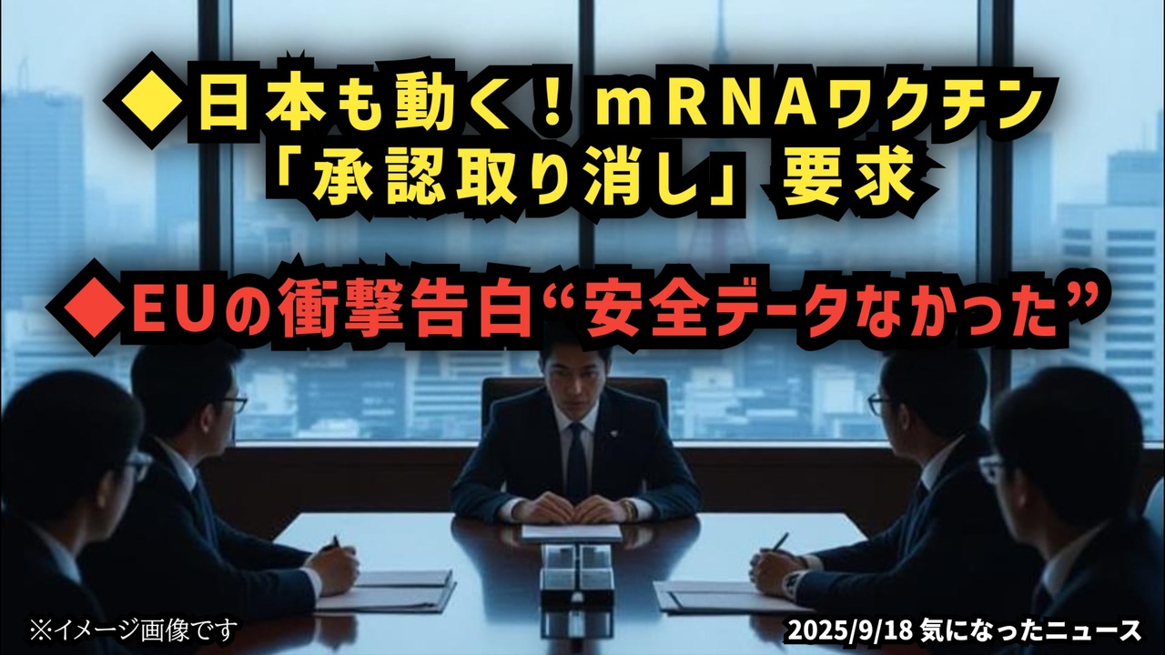 ◆日本も動く!mRNAワクチン「承認取り消し」要求◆EUの衝撃告白「安全データなかった」<br><br>あらすじ <br>日本で初めて「回収」という言葉が公式に取り上げられる可能性が出てきました。専門家たちが国会の場で会見を開き、mRNAワクチンをめぐる重大な問題を正面から指摘。対する当局は一歩も引かず、緊張感ある対立が浮き彫りになります。<a href="https://jsvrc.jp/new250911/" target="_blank" rel="noopener nofollow">https://jsvrc.jp/new250911/</a><br><br>さらにヨーロッパでは、これまで語られなかった“事実”が公的に認められました。国際的な舞台で起きたこの告白は、日本にも無関係ではありません。今後、何が動き出すのか――大きな注目が集まっています。<a href="https://x.com/bingsuzuki/status/1968003969068027945?t=xiUHZVdzZBAXIQlUiSzqgg&s=19" target="_blank" rel="noopener nofollow">https://x.com/bingsuzuki/status/1968003969068027945?t=xiUHZVdzZBAXIQlUiSzqgg&s=19</a><br><br>◆今回の台本<a href="https://keiichiro8140.hatenablog.com/entry/2509188888111" target="_blank" rel="noopener nofollow">https://keiichiro8140.hatenablog.com/entry/2509188888111</a><br><br>◆YouTubeチャンネル登録よろしくお願いします🙏 <a href="https://www.youtube.com/@K16news888" target="_blank" rel="noopener nofollow">https://www.youtube.com/@K16news888</a><br><br>◆もしも(BAN)の時のためのマイリンク集<a href="https://lit.link/K16_888" target="_blank" rel="noopener nofollow">https://lit.link/K16_888</a><br><br>ご覧いただきありがとうございます<br>m(_ _)m<br>気になったニュース 2025/9/18<br><br />著作権、肖像権に配慮して作成しております。<br><br>◆気になったニュースの台本!?<br>メモ代わりに作った台本をそのままあげてます<br><a href="https://keiichiro8140.hatenablog.com/." target="_blank" rel="noopener nofollow">https://keiichiro8140.hatenablog.com/.</a><br><br><br>ここからはシリーズ紹介<br><br><br>◆ ワクチン解毒・デトックス<br><a href="https://x.gd/fZweg" target="_blank" rel="noopener nofollow">https://x.gd/fZweg</a><br><br>◆ウイリアム・マキス博士のがん治療(イベルメクチン・フェンベンダゾール等)<br><a href="https://x.gd/AtFYS" target="_blank" rel="noopener nofollow">https://x.gd/AtFYS</a><br><br>◆予防接種健康被害救済制度<br><a href="https://x.gd/0xK9x" target="_blank" rel="noopener nofollow">https://x.gd/0xK9x</a><br><br>◆気になったニュース #1501~<br><br>◆ 【ショートver】気になったニュース<br><a href="https://x.gd/7MxXC" target="_blank" rel="noopener nofollow">https://x.gd/7MxXC</a><br><br>◆ 気になったニュース #1001~<br><a href="https://x.gd/Lp8gv" target="_blank" rel="noopener nofollow">https://x.gd/Lp8gv</a><br><br>◆ 気になったニュース #501~<br><a href="https://x.gd/EmbS4" target="_blank" rel="noopener nofollow">https://x.gd/EmbS4</a><br><br>◆ 気になったニュース #1~#500<br><a href="https://x.gd/uPhNb" target="_blank" rel="noopener nofollow">https://x.gd/uPhNb</a><br><br>◆ X(旧Twitter)・テレグラムで気になった情報<br><a href="https://x.gd/YG6FT" target="_blank" rel="noopener nofollow">https://x.gd/YG6FT</a><br><br>◆ 日比谷5万人パレードデ⚪生放送アーカイブ動画<br><a href="https://x.gd/3CHJv" target="_blank" rel="noopener nofollow">https://x.gd/3CHJv</a><br><br>◆日比谷5万人パレード⚪モのマイリスト作ってみました<br><a href="https://nico.ms/mylist/76828848?ref=sp_other" target="_blank" rel="noopener nofollow">https://nico.ms/mylist/76828848?ref=sp_other</a><br><br>◆3.30 令和の百姓⚪⚪<br><a href="https://www.nicovideo.jp/series/511791?ref=garage_share_other" target="_blank" rel="noopener nofollow">https://www.nicovideo.jp/series/511791?ref=garage_share_other</a><br><br>◆ 及川幸久さんの【XNEWS】シリーズ<br><a href="https://x.gd/3k78K" target="_blank" rel="noopener nofollow">https://x.gd/3k78K</a><br><br>◆これまでの動画<a href="https://x.gd/sPXoJ" target="_blank" rel="noopener nofollow">https://x.gd/sPXoJ</a><br><br>◆もしも(BAN)の時のためのマイリンク集<a href="https://lit.link/K-16_News44" target="_blank" rel="noopener nofollow">https://lit.link/K-16_News44</a><br><br>