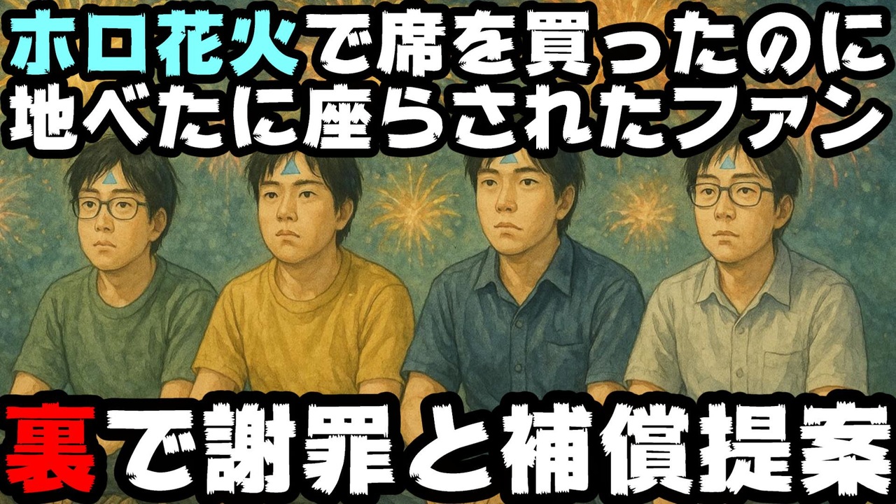2025年9月17日、 ホロライブの花火イベントでS席を購入したのに席が無くて地面に座らされたと主張していた方が、裏で謝罪と補償提案があったと報告されました。<br><br>引用<br><a href="https://x.com/ColinWu2/status/1964541823642456386" target="_blank" rel="noopener nofollow">https://x.com/ColinWu2/status/1964541823642456386</a><br><a href="https://x.com/chiakiuk/status/1964559269766078605" target="_blank" rel="noopener nofollow">https://x.com/chiakiuk/status/1964559269766078605</a><br><a href="https://x.com/ColinWu2/status/1968257809944027322" target="_blank" rel="noopener nofollow">https://x.com/ColinWu2/status/1968257809944027322</a><br><br>Youtube <a href="https://www.youtube.com/@V_Virgin_Mary" target="_blank" rel="noopener nofollow">https://www.youtube.com/@V_Virgin_Mary</a><br>twitter <a href="https://twitter.com/V_Virgin_Mary" target="_blank" rel="noopener nofollow">https://twitter.com/V_Virgin_Mary</a><br><br>使用素材 高品質なフリー動画素材 - Pixabay <a href="https://pixabay.com/ja/videos" target="_blank" rel="noopener nofollow">https://pixabay.com/ja/videos</a><br><br>#切り抜き #切り抜き動画 #ゆっくり解説 #VOICEROID #VOICEROID解説 #vtuber #vtubers #バーチャル #ブイチューバー
