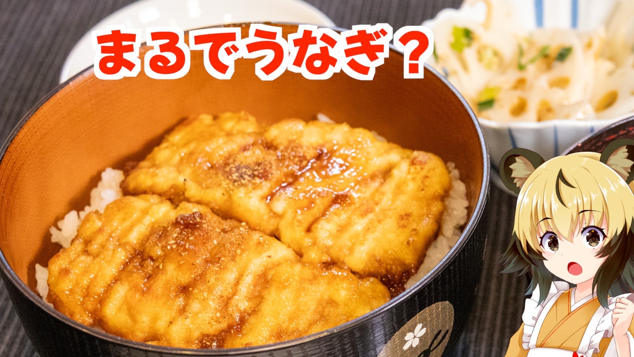うなぎもどき丼を作ります!<br><br>■材料<br>・豆腐 200g<br>・はんぺん 200g<br>・のり 1枚<br>・砂糖 小さじ2<br>・しょうゆ 大さじ1.5<br>・みりん 大さじ2<br>・料理酒 大さじ1<br>・山椒 お好みの量<br><br>■所要時間<br>調理時間:30分程度<br><br><br>ーーーーーーーーーーーーーーーー<br>音声:AI VOICE2紲星あかり<br>立ち絵:星華彩二魔さん<br>音源:DOVA-SYNDROME<br>イラスト:いらすとや<br>機材:Canon EOS R10<br>編集ソフト:Final Cut Pro<br>ーーーーーーーーーーーーーーーー<br><br>youtube:<a href="https://youtu.be/-38mC4h35k0" target="_blank" rel="noopener nofollow">https://youtu.be/-38mC4h35k0</a><br>X(旧:twitter):@lycaon_kitchen<br><br>りおんの和風喫茶:<a href="https://www.nicovideo.jp/series/77190" target="_blank" rel="noopener">series/77190</a><br>おつかれごはん:<a href="https://www.nicovideo.jp/series/155690" target="_blank" rel="noopener">series/155690</a><br>手作り和菓子でちょっとひとやすみしませんか?:<a href="https://www.nicovideo.jp/series/155691" target="_blank" rel="noopener">series/155691</a>