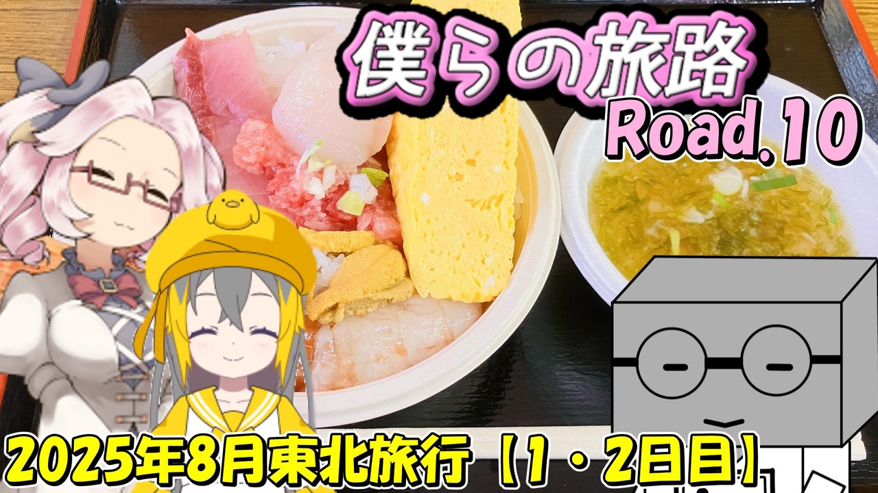 2025年8月東北旅行1・2日目の動画です(∩´∀`)∩<br><br>1日目は、ずっとやってみたかった1日で1000キロ走破を達成♪<br>流石に疲れたから、今後やらないとは思うけど達成感は半端ないです!<br><br>グルメに観光にと充実した旅なので、ぜひ3日目以降も見て行って欲しいです(^^♪<br><br>【裏話】<br>め:そう言えば、一眼カメラを持って行っていたのに何で弘前城の写真をスマホで撮影していたの?<br>ひ:そう言えば、そうです<br>マ:え、えーと、気分だよ<br> たまたまスマホで撮影がしたい気分だったんだよ<br>め:へ~ソウナンダ<br> ひよこちゃん、パパの手を掴んで離さないでおいてね<br>ひ:うん?<br> 分かりました♪<br>マ:あ、ちょ、ま<br>(鞄の中を探る)<br>め:パパ、家で充電していたはずのカメラの電池はどこかな?<br>マ:あ~え~と<br> 家の机の上で自分たちの帰りを待っているかな<br>ひ:パパ、あれだけ持ち物を確認していたのに<br>め:はぁ、まぁ今回はスマホで撮影をしておきましょうか<br>ひ:はいです<br><br>【動画内使用素材詳細】<br><a href="https://commons.nicovideo.jp/works/nc18954" target="_blank" rel="noopener">nc18954</a><br><a href="https://commons.nicovideo.jp/works/nc194881" target="_blank" rel="noopener">nc194881</a><br><a href="https://commons.nicovideo.jp/works/nc256993" target="_blank" rel="noopener">nc256993</a><br><a href="https://www.nicovideo.jp/watch/sm39845370" class="watch">sm39845370</a><br><a href="https://commons.nicovideo.jp/works/nc257937" target="_blank" rel="noopener">nc257937</a><br><a href="https://commons.nicovideo.jp/works/nc281035" target="_blank" rel="noopener">nc281035</a><br><a href="https://www.nicovideo.jp/watch/sm33517192" class="watch">sm33517192</a><br><a href="https://commons.nicovideo.jp/works/nc289420" target="_blank" rel="noopener">nc289420</a><br><a href="https://commons.nicovideo.jp/works/nc253660" target="_blank" rel="noopener">nc253660</a><br><a href="https://seiga.nicovideo.jp/seiga/im11331684" target="_blank" rel="noopener">im11331684</a><br><a href="https://commons.nicovideo.jp/works/nc79330" target="_blank" rel="noopener">nc79330</a><br><a href="https://commons.nicovideo.jp/works/nc196092" target="_blank" rel="noopener">nc196092</a><br><a href="https://commons.nicovideo.jp/works/nc120959" target="_blank" rel="noopener">nc120959</a><br><a href="https://commons.nicovideo.jp/works/nc243394" target="_blank" rel="noopener">nc243394</a><br><a href="https://commons.nicovideo.jp/works/nc236011" target="_blank" rel="noopener">nc236011</a><br><br />X<br><a href="https://twitter.com/noname07740" target="_blank" rel="noopener nofollow">https://twitter.com/noname07740</a>