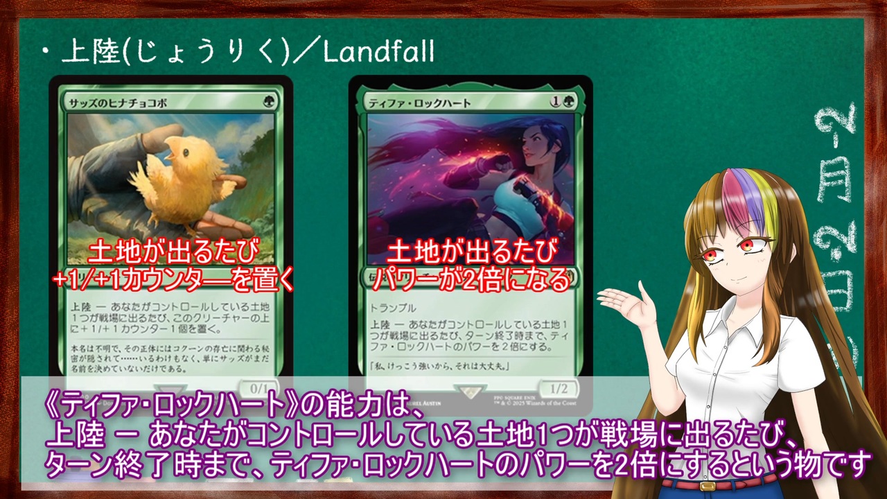 遅れて申し訳ありません…<br>夏バテでなかなか作業ができませんでした…<br>短い動画ですが、次回からよく使うキーワード能力や能力語、キーワード処理の解説をしていきます<br><br><br><a href="https://www.nicovideo.jp/watch/sm44669791" class="watch">sm44669791</a>(カートン)<前 次>(まだだよ!)<br><br>シリーズ><a href="https://www.nicovideo.jp/series/371671" target="_blank" rel="noopener">series/371671</a><br><br>他シリーズ<br>アンタップからはじめるMTG ><a href="https://www.nicovideo.jp/series/312890" target="_blank" rel="noopener">series/312890</a><br><br><br>細々とやってるディスコード鯖、よろしかったらどうぞ<br>「アンタップから始めるMTG」:<a href="https://discord.gg/YyQDVnsQnD" target="_blank" rel="noopener nofollow">https://discord.gg/YyQDVnsQnD</a><br><br>VOICEVOX もち子さん(cv明日葉よもぎ)<br>VOICEVOX 中国うさぎ<br><span style="font-size: 10px;">"[ギャラ子と一緒にアンタップ!シリーズ] はファンコンテンツ・ポリシーに沿った非公式のファンコンテンツです。ウィザーズ社の認可/許諾は得ていません。題材の一部に、ウィザーズ・オブ・ザ・コースト社の財産を含んでいます。©Wizards of the Coast LLC."</span>