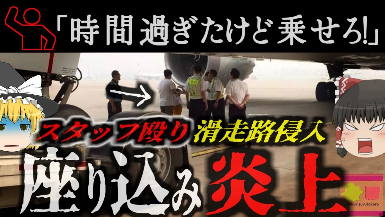 <a href="#" class="seekTime" data-seekTime="00:10" onclick="seekNicoPlayer('#00:10'); return false;">#00:10</a> 北京の空港でフライトが大幅遅延<br><a href="#" class="seekTime" data-seekTime="1:21" onclick="seekNicoPlayer('#1:21'); return false;">#1:21</a> 遅れて到着した若い夫婦<br><a href="#" class="seekTime" data-seekTime="2:22" onclick="seekNicoPlayer('#2:22'); return false;">#2:22</a> 逆切れして滑走路に侵入<br><a href="#" class="seekTime" data-seekTime="3:04" onclick="seekNicoPlayer('#3:04'); return false;">#3:04</a> 即座に逮捕連行される<br><a href="#" class="seekTime" data-seekTime="4:00" onclick="seekNicoPlayer('#4:00'); return false;">#4:00</a> ブラックリスト入り<br><a href="#" class="seekTime" data-seekTime="4:48" onclick="seekNicoPlayer('#4:48'); return false;">#4:48</a> 過去には似たようなケースが多数<br><a href="#" class="seekTime" data-seekTime="5:31" onclick="seekNicoPlayer('#5:31'); return false;">#5:31</a> 個人の理由で途中搭乗は赦されない<br><a href="#" class="seekTime" data-seekTime="6:47" onclick="seekNicoPlayer('#6:47'); return false;">#6:47</a> 空港のルールが厳格になっている理由<br><a href="#" class="seekTime" data-seekTime="8:15" onclick="seekNicoPlayer('#8:15'); return false;">#8:15</a> 世間の反応<br><br><br>引用・出展・参考文献(視聴者提供資料など<br>Couple detained for sitting on runway, blocking flight in Beijing <br><a href="https://x.gd/BsXxl" target="_blank" rel="noopener nofollow">https://x.gd/BsXxl</a><br>Couple stages sit-in on runway at Beijing airport to keep plane from taking off<br><a href="https://x.gd/DhBKJ" target="_blank" rel="noopener nofollow">https://x.gd/DhBKJ</a><br><br />※この動画は過去の事件を知り、現在でも同じことが発生する危険性を再認識、関与しないように促すための動画であり、視聴者を扇動、動揺を誘うためのコンテンツではありません。<br><br>ご要望にお応えして、メンバーシップの開設を行いました。<br>下記URLからも登録可能ですので、ご興味がある方は是非ご参加ください。<br><a href="https://www.youtube.com/channel/UCcT5a1J7XJW7CLYI2RKl4pw/join" target="_blank" rel="noopener nofollow">https://www.youtube.com/channel/UCcT5a1J7XJW7CLYI2RKl4pw/join</a><br><br><br>Twitter<br>→<a href="https://twitter.com/yukkurisurutoko" target="_blank" rel="noopener nofollow">https://twitter.com/yukkurisurutoko</a><br><br>取り急ぎ、簡易的にですがマイリストを作りました。<br>【ゆっくり解説】事故・事件関係紹介リスト <br><a href="https://www.nicovideo.jp/mylist/71034319" target="_blank" rel="noopener nofollow">https://www.nicovideo.jp/mylist/71034319</a><br>【ゆっくり解説】放射線系事故<br><a href="https://www.nicovideo.jp/mylist/71034368" target="_blank" rel="noopener nofollow">https://www.nicovideo.jp/mylist/71034368</a><br>【ゆっくり解説】鉄道系事故・事件関連<br><a href="https://www.nicovideo.jp/mylist/71034379" target="_blank" rel="noopener nofollow">https://www.nicovideo.jp/mylist/71034379</a>