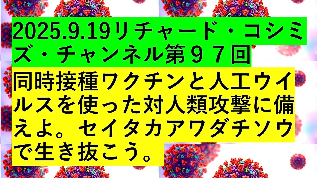 <span style="color: #cc0000;"><strong>◐『「 リチャード・コシミズ・チャンネル 」⦅ 第97回放送 ⦆⦅ 改良版 ⦆』</strong></span><br><br> <span style="color: #ff0000;"><strong>「『 同時接種ワクチン 』と『 人工ウイルス 』を使った『 対人類攻撃 』に『 備えよ 』。『 セイタカアワダチソウ 』で『 生き抜こう 』」</strong></span><br><br> <span style="color: #38761d;"><strong>◐『 リチャード・コシミズ・チャンネル⦅ ニコニコ チャンネル ⦆』</strong></span><br> <span style="color: #0000ff;"><strong><a href="https://ch.nicovideo.jp/richardkoshimizu" target="_blank" rel="noopener nofollow">https://ch.nicovideo.jp/richardkoshimizu</a></strong></span><br><br> <span style="color: #38761d;"><strong>◐『 リチャード・コシミズ「 ニコニコ生放送⦅ LIVE ⦆」』</strong></span><br> <span style="color: #0000ff;"><strong><a href="https://www.nicovideo.jp/user/120930363/live_programs" target="_blank" rel="noopener nofollow">https://www.nicovideo.jp/user/120930363/live_programs</a></strong></span><br><br> <span style="color: #38761d;"><strong>◐『「 リチャード・コシミズ 講演会 」公式「 動画ギャラリー 」</strong></span><span style="color: #ff0000;"><strong>⦅ 最新動画 ⦆⦅ YouTube版 ⦆</strong></span><span style="color: #38761d;"><strong>』</strong></span><br> <span style="color: #0000ff;"><strong><a href="https://www.youtube.com/@richardkoshimizu-video-gallery" target="_blank" rel="noopener nofollow">https://www.youtube.com/@richardkoshimizu-video-gallery</a></strong></span><br><br>