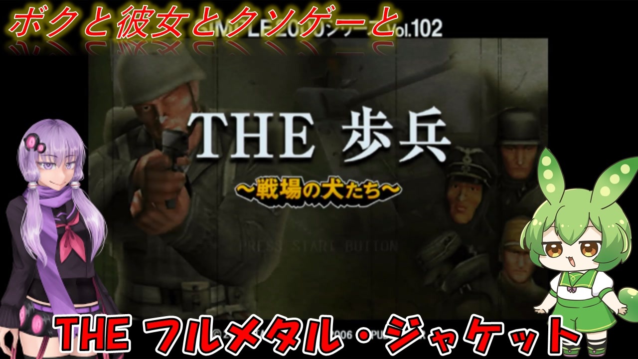 PS2 THE歩兵 ~戦場の犬たち~をプレイ<br>タイトルに犬たちとあるけどワンマンアーミーだぞ<br><br>ゆ:気になってフルメタル・ジャケット見ちゃったぜ<br>ず:ドーナツのくだり以降のほほえみデブ怖すぎて引いちゃった・・・<br><br>動画内で使用させていただいた素材<br>【イラスト】<br>ずんだもん→のんたお*様:<a href="https://seiga.nicovideo.jp/seiga/im10857524" target="_blank" rel="noopener nofollow">https://seiga.nicovideo.jp/seiga/im10857524</a><br>結月ゆかり→Ray-Kbys様:<a href="https://seiga.nicovideo.jp/seiga/im10915386" target="_blank" rel="noopener nofollow">https://seiga.nicovideo.jp/seiga/im10915386</a><br><br>【音声】<br>VoiceVox:ずんだもん<br><a href="https://voicevox.hiroshiba.jp/" target="_blank" rel="noopener nofollow">https://voicevox.hiroshiba.jp/</a><br><br>A.I.Voice:結月ゆかり<br><a href="https://aivoice.jp/product/yukari/" target="_blank" rel="noopener nofollow">https://aivoice.jp/product/yukari/</a><br><br>【その他素材】<br>効果音ラボ様:<a href="https://soundeffect-lab.info/" target="_blank" rel="noopener nofollow">https://soundeffect-lab.info/</a><br>いらすとや様:<a href="https://www.irasutoya.com/" target="_blank" rel="noopener nofollow">https://www.irasutoya.com/</a><br>甘茶の音楽工房様:<a href="https://amachamusic.chagasi.com/index.html" target="_blank" rel="noopener nofollow">https://amachamusic.chagasi.com/index.html</a><br>等<br>