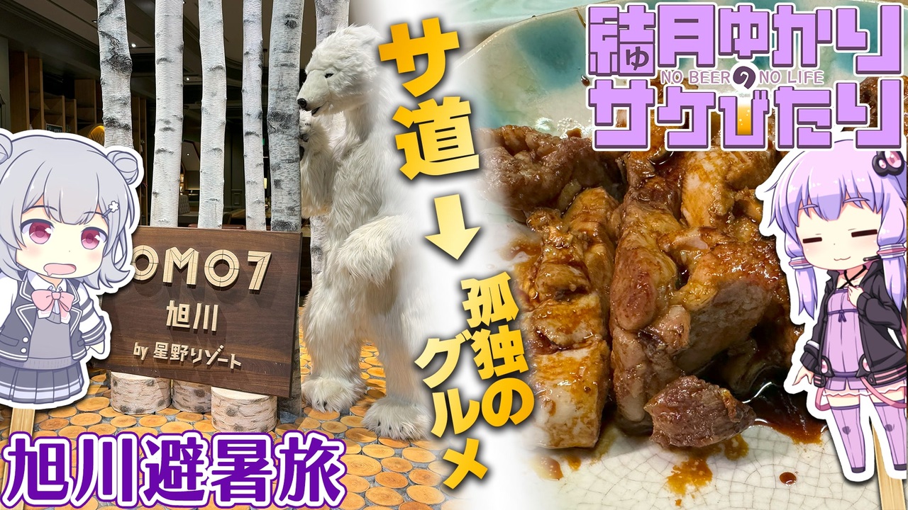<span style="color: #9900ff; font-size: 24px;">美味い肴で最高の夏!</span><br><strong>最高の……とか言ってられない暑さの夏から逃げるべく旭川へ。</strong><br>編集サボってたら秋になっちゃいましたが。<br>結果的にテレ東ドラマ聖地巡り旅になりました。<br><span style="color: #ff00ff;">「いいね!」メッセージ:富良野にも足を伸ばした話</span><br><br><span style="color: #4a86e8;"><strong>↓今回のサ活記録はこちら</strong></span><br>ドーミーイン旭川:<a href="https://sauna-ikitai.com/saunners/19899/posts/8667276" target="_blank" rel="noopener nofollow">https://sauna-ikitai.com/saunners/19899/posts/8667276</a><br>サウナプラトー:<a href="https://sauna-ikitai.com/saunners/19899/posts/8671067" target="_blank" rel="noopener nofollow">https://sauna-ikitai.com/saunners/19899/posts/8671067</a><br><br><span style="color: #0000ff; font-size: 14px;"><strong><</strong></span><span style="color: #0000ff;"><strong>結月ゆかりのサケびたり</strong></span><a href="https://www.nicovideo.jp/mylist/75790185" target="_blank" rel="noopener">mylist/75790185</a><span style="color: #0000ff; font-size: 14px;"><strong>></strong></span><br>前→海鮮vs焼肉、ビールに合わせるなら!? 夏の温泉旅行 in 東伊豆 <a href="https://www.nicovideo.jp/watch/sm45282304" class="watch">sm45282304</a><br>次→石川旅前編・金沢で海鮮と酒!「回転寿司輝らり」「酒粋醍醐」<a href="https://www.nicovideo.jp/watch/sm45513251" class="watch">sm45513251</a><br>関連→絶景と飯と酒!「ラビスタ函館ベイANNEX」<a href="https://www.nicovideo.jp/watch/sm44842757" class="watch">sm44842757</a><br><br><strong>制作:ベホイミProject(<a href="https://www.nicovideo.jp/mylist/27336" target="_blank" rel="noopener">mylist/27336</a>)</strong><br>Twitter:<a href="https://twitter.com/BehoimiP" target="_blank" rel="noopener nofollow">https://twitter.com/BehoimiP</a><br>YouTube「T.A.S魔理沙ちゃんねる」:<a href="https://www.youtube.com/c/TasMarisa" target="_blank" rel="noopener nofollow">https://www.youtube.com/c/TasMarisa</a>