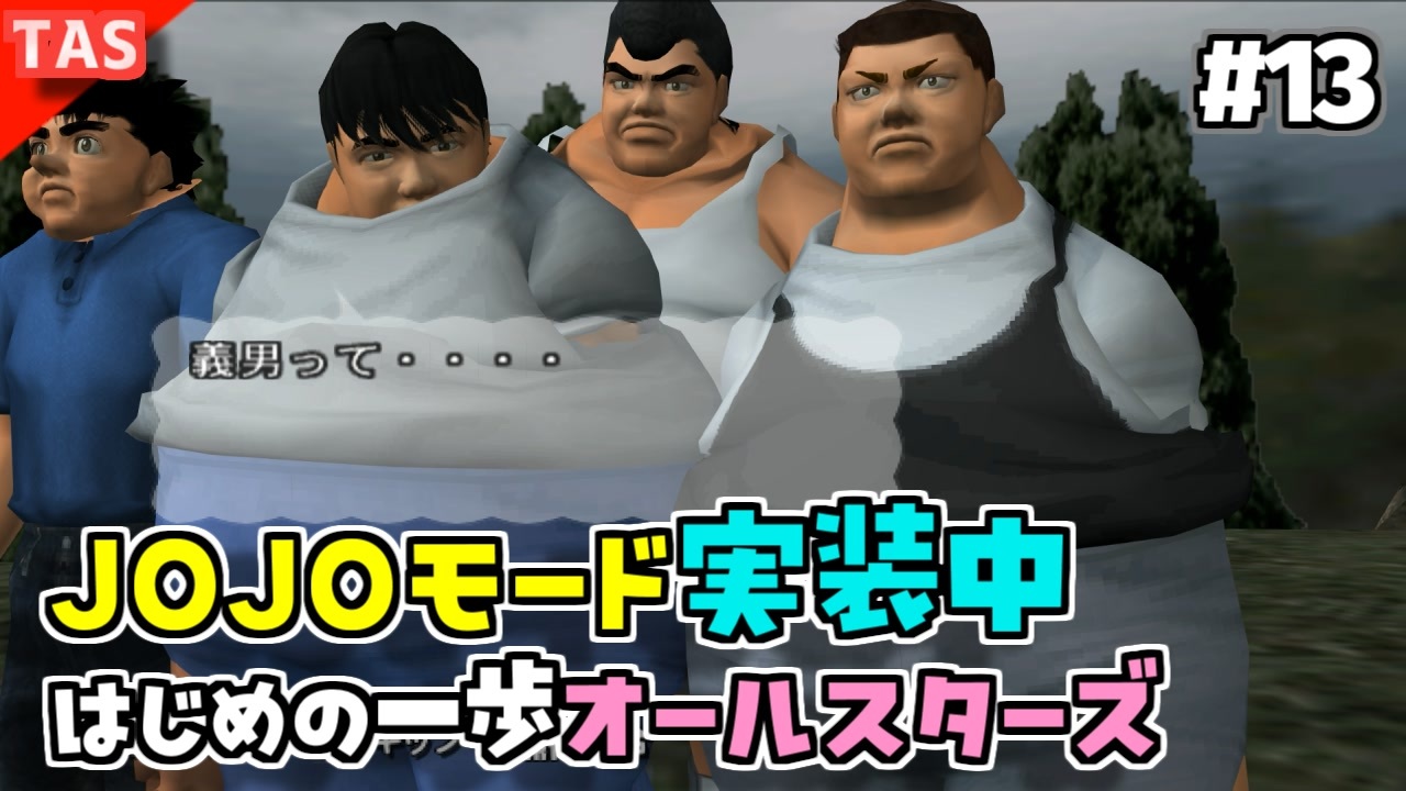 改造はじめの一歩オールスターズのストーリモードをTASさんが攻略します<br>結構前作の改造プログラムの流用が出来たので、追い打ちモードを有効にしています。<br><br>パート13は以下の3ステージをクリアしました <br>鷹村 VS 熊<br>鷹村 VS 伊藤 貴明<br><br>使用ソフト:はじめの一歩 ALL☆STARS PS2版<br>ジャンル:ボクシングゲーム<br><br><br>会長 VS リカルド →<a href="https://www.nicovideo.jp/watch/sm44079325" class="watch">sm44079325</a><br>デブになった鷹村 →<a href="https://www.nicovideo.jp/watch/sm43384767" class="watch">sm43384767</a><br>パパイヤ迫真の追撃 →<a href="https://www.nicovideo.jp/watch/sm44326277" class="watch">sm44326277</a><br>ゲロ道 VS アルフレド →<a href="https://www.nicovideo.jp/watch/sm44423708" class="watch">sm44423708</a><br>一歩追い打ちしてしまう →<a href="https://www.nicovideo.jp/watch/sm44079346" class="watch">sm44079346</a><br />動画に「いいね!」「マイリスト登録」よろしくお願いします。<br><br>・おすすめ<br>[TAS]Grand Theft Auto 3 Part1→<a href="https://www.nicovideo.jp/watch/sm14718961" class="watch">sm14718961</a><br>[TAS]MaxPayne デッドターゲット Part1→<a href="https://www.nicovideo.jp/watch/sm15093299" class="watch">sm15093299</a><br>[TAS]michigan Part1→<a href="https://www.nicovideo.jp/watch/sm18393230" class="watch">sm18393230</a><br><br>サポート頂けると励みになります<br>魔界塔士のサポーターになる→<a href="https://creator-support.nicovideo.jp/registration/15153622" target="_blank" rel="noopener nofollow">https://creator-support.nicovideo.jp/registration/15153622</a><br><br>TAS動画まとめ→<a href="https://koeiprogenitor.com/tas/matome/" target="_blank" rel="noopener nofollow">https://koeiprogenitor.com/tas/matome/</a><br>つべ→<a href="https://www.youtube.com/user/koeiprogenitor1/" target="_blank" rel="noopener nofollow">https://www.youtube.com/user/koeiprogenitor1/</a><br>インスタ→<a href="https://www.instagram.com/makaitoshi" target="_blank" rel="noopener nofollow">https://www.instagram.com/makaitoshi</a><br><br>本編→シリーズ一覧見てね<br>