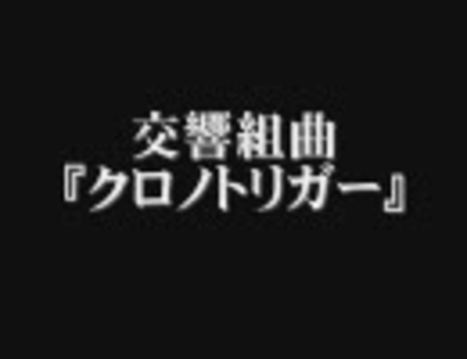 ラスダン→ラスボス→エンディングのフルオケメドレーです。<br />前半は『黒の夢・世界変革の時・ラストバトル』の3曲です。繋ぎは全てラヴォスのテーマ。後半はオルゴールのねじを巻きながら開始。途中4小節ループのピアノの上に、PT7人のテーマを長調に移旋したものがが1人ずつ、或いは2人同時に現れます。締めは『遥かなる時の彼方へ』。<br /><br />交響組曲「クロノトリガー」:「中世三部作」(<a href="https://www.nicovideo.jp/watch/sm3516083" class="watch">sm3516083</a>)「古の響き」(<a href="https://www.nicovideo.jp/watch/sm3536658" class="watch">sm3536658</a>)「終曲」(this)<br />FF6:「邪神の塔/死闘」(<a href="https://www.nicovideo.jp/watch/sm7116166" class="watch">sm7116166</a>)「妖星乱舞」(<a href="https://www.nicovideo.jp/watch/sm29743411" class="watch">sm29743411</a>)「蘇る緑」(<a href="https://www.nicovideo.jp/watch/sm27726055" class="watch">sm27726055</a>)<br />マイリスト(<a href="https://www.nicovideo.jp/mylist/6489384" target="_blank" rel="noopener">mylist/6489384</a>)<br /><br />【新作】『スケルツァンド』(吹奏楽コンクール2017課題曲I)を打ち込んでみた:<a href="https://www.nicovideo.jp/watch/sm30808641" class="watch">sm30808641</a>