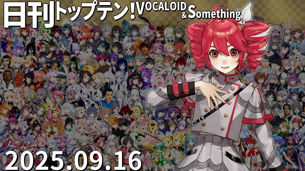 前日(9/15)←<a href="https://www.nicovideo.jp/watch/sm45422003" class="watch">sm45422003</a> <a href="https://www.nicovideo.jp/watch/sm45429502" class="watch">sm45429502</a>→翌日(9/17)<br>★初登場や久々紹介となる投稿者の作品をXでまとめて確認できます!<a href="https://tinyurl.com/j683988a" target="_blank" rel="noopener nofollow">https://tinyurl.com/j683988a</a><br><br>★チャプター<br>昨日1位<a href="#" class="seekTime" data-seekTime="0:00" onclick="seekNicoPlayer('#0:00'); return false;">#0:00</a> TOP10<a href="#" class="seekTime" data-seekTime="0:36" onclick="seekNicoPlayer('#0:36'); return false;">#0:36</a> 1年前<a href="#" class="seekTime" data-seekTime="2:56" onclick="seekNicoPlayer('#2:56'); return false;">#2:56</a> TOP3<a href="#" class="seekTime" data-seekTime="3:24" onclick="seekNicoPlayer('#3:24'); return false;">#3:24</a> 10年前<a href="#" class="seekTime" data-seekTime="4:55" onclick="seekNicoPlayer('#4:55'); return false;">#4:55</a> PICKUP<a href="#" class="seekTime" data-seekTime="5:23" onclick="seekNicoPlayer('#5:23'); return false;">#5:23</a> <br><br>★トップテン<br>10:<a href="https://www.nicovideo.jp/watch/sm45397527" class="watch">sm45397527</a> 9:<a href="https://www.nicovideo.jp/watch/sm45392009" class="watch">sm45392009</a> 8:<a href="https://www.nicovideo.jp/watch/sm45406475" class="watch">sm45406475</a> 7:<a href="https://www.nicovideo.jp/watch/sm45405086" class="watch">sm45405086</a> <br>6:<a href="https://www.nicovideo.jp/watch/sm45401418" class="watch">sm45401418</a> 5:<a href="https://www.nicovideo.jp/watch/sm45406650" class="watch">sm45406650</a> 4:<a href="https://www.nicovideo.jp/watch/sm45403776" class="watch">sm45403776</a> 3:<a href="https://www.nicovideo.jp/watch/sm45383270" class="watch">sm45383270</a> 2:<a href="https://www.nicovideo.jp/watch/sm45390393" class="watch">sm45390393</a> 1:<a href="https://www.nicovideo.jp/watch/sm45392536" class="watch">sm45392536</a> <br><br>★ピックアップ(B~Dは超新着枠)<br>B:<a href="https://www.nicovideo.jp/watch/sm45403864" class="watch">sm45403864</a> C:<a href="https://www.nicovideo.jp/watch/sm45407501" class="watch">sm45407501</a> D:<a href="https://www.nicovideo.jp/watch/sm45360094" class="watch">sm45360094</a> E:<a href="https://www.nicovideo.jp/watch/sm45395988" class="watch">sm45395988</a> F:<a href="https://www.nicovideo.jp/watch/sm45388013" class="watch">sm45388013</a> <br><br>★プレイバック <br>A(1年前):<a href="https://www.nicovideo.jp/watch/sm44110174" class="watch">sm44110174</a> 十(10年前):<a href="https://www.nicovideo.jp/watch/sm27166707" class="watch">sm27166707</a> 前日の第1位: <a href="https://www.nicovideo.jp/watch/sm45399854" class="watch">sm45399854</a>(重音テト)<br><br>☆集計対象:2025/9/9~16 5時投稿の作品(9/16 5時集計)<br>★計算式:再生×1+コメント×最大12+いいね!×17+マイリスト×12<br>☆プレイリスト:<u><a href="https://nikkantop10.hatenablog.com/entry/ar20250916" target="_blank" rel="noopener nofollow">https://nikkantop10.hatenablog.com/entry/ar20250916</a></u> 、 <a href="https://www.nicovideo.jp/mylist/49271984" target="_blank" rel="noopener">mylist/49271984</a> <br>★1年前トップテン:<a href="https://www.nicovideo.jp/watch/sm44115167" class="watch">sm44115167</a><br />★日刊トップテン動画一覧マイリスト:<a href="https://www.nicovideo.jp/mylist/47849908" target="_blank" rel="noopener">mylist/47849908</a><br>☆ルールや計算式の詳細:<a href="https://nikkantop10-sub.hatenablog.com/entry/top10_rule" target="_blank" rel="noopener nofollow">https://nikkantop10-sub.hatenablog.com/entry/top10_rule</a><br><span style="color: #262626;">★K!!te Playlist LINK!:<a href="https://kiite.jp/user/AIST_playlist_bot" target="_blank" rel="noopener nofollow">https://kiite.jp/user/AIST_playlist_bot</a><br>☆Twitter:<a href="https://twitter.com/VOCALO_NEWRANK" target="_blank" rel="noopener nofollow">https://twitter.com/VOCALO_NEWRANK</a><br>★Thread:<a href="https://www.threads.net/@lukanan_p" target="_blank" rel="noopener nofollow">https://www.threads.net/@lukanan_p</a></span><br><br><span style="color: #0000ff;"><strong>◆今後の動画投稿イベント情報</strong></span><br>2025/12/29~31 <strong>先端映像音楽表現投稿祭</strong> <a href="https://twipla.jp/events/678401" target="_blank" rel="noopener nofollow">https://twipla.jp/events/678401</a><br>2026/1/1~4 <strong>ボカロサビ投稿祭2026 </strong><a href="https://twipla.jp/events/705936" target="_blank" rel="noopener nofollow">https://twipla.jp/events/705936</a> ※既存曲は新規投稿で参加可<br>2026/1/10~12 <strong>ポストロック投稿祭 </strong><a href="https://twipla.jp/events/694939" target="_blank" rel="noopener nofollow">https://twipla.jp/events/694939</a>