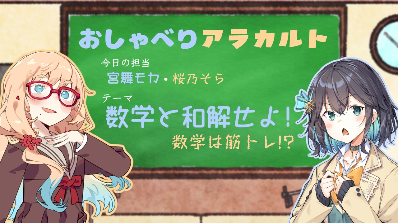 なぜ数学を勉強しなきゃならないのかと聞かれると答えるのがなかなか難しくないですか?<br>そらさんからの問題の答えはいいねに書いておきます<br><br>過去に作ったおすすめ動画→<a href="https://www.nicovideo.jp/mylist/78901640" target="_blank" rel="noopener">mylist/78901640</a><br><br>声の出演<br>VOICEPEAK 宮舞モカ<br>VOICEPEAK 桜乃そら<br><br>お借りした素材<br>立ち絵<br>【公式依頼】宮舞モカ立ち絵素材(<a href="https://seiga.nicovideo.jp/seiga/im11364151" target="_blank" rel="noopener">im11364151</a>)/アジシオ様<br>【素材】桜乃そら立ち絵(<a href="https://seiga.nicovideo.jp/seiga/im11236676" target="_blank" rel="noopener">im11236676</a>)/からい様<br><br>背景<br> ラジオスタジオの背景【フリー素材あそび】(<a href="https://commons.nicovideo.jp/works/nc320473" target="_blank" rel="noopener">nc320473</a>)/フリー素材あそび様<br>【背景】黒板02【フリー素材あそび】(<a href="https://commons.nicovideo.jp/works/nc194881" target="_blank" rel="noopener">nc194881</a>)/フリー素材あそび様<br><br>BGM<br>【BGM】陽気で爽やかなアンサンブル「街に出掛けよう」(<a href="https://commons.nicovideo.jp/works/nc399471" target="_blank" rel="noopener">nc399471</a>)/mejirok様<br>【BGM】感傷的でゆったり・落ち着くアンサンブル「メロウ」(<a href="https://commons.nicovideo.jp/works/nc425169" target="_blank" rel="noopener">nc425169</a>)/mejirok様<br> 雲を眺めていたら(<a href="https://commons.nicovideo.jp/works/nc316410" target="_blank" rel="noopener">nc316410</a>)/れどすとん様<br>【日常】いつもの日々【ほのぼの】(<a href="https://commons.nicovideo.jp/works/nc425523" target="_blank" rel="noopener">nc425523</a>)/ゆうり様<br> 暖かくて懐かしい、ノスタルジーなBGM「街角の時計屋さん」(<a href="https://commons.nicovideo.jp/works/nc426130" target="_blank" rel="noopener">nc426130</a>)/わつぃ様<br> 黄昏色の水平線【美しい, 温かい】(<a href="https://commons.nicovideo.jp/works/nc259842" target="_blank" rel="noopener">nc259842</a>)/こばっと様<br><br>ジングル<br>【動画用】ウッドベースのおしゃれアイキャッチフレーズ(5秒)(<a href="https://commons.nicovideo.jp/works/nc432466" target="_blank" rel="noopener">nc432466</a>)/Ozzz(おず)様<br><br>効果音<br>【効果音ラボ】マウスのクリック(カチッ)(<a href="https://commons.nicovideo.jp/works/nc133732" target="_blank" rel="noopener">nc133732</a>)/効果音ラボ様<br> シュバ!本や紙をめくる音(<a href="https://commons.nicovideo.jp/works/nc276034" target="_blank" rel="noopener">nc276034</a>)/beyan様<br><br>編集ソフト<br> ゆっくりMovieMaker4 Lite (<a href="https://commons.nicovideo.jp/works/nc236011" target="_blank" rel="noopener">nc236011</a>) / 饅頭遣い様