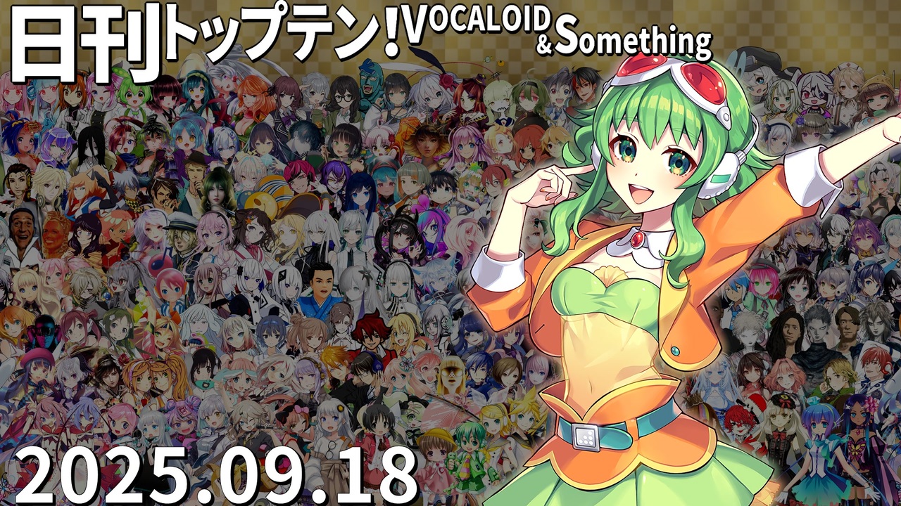 前日(9/17)←<a href="https://www.nicovideo.jp/watch/sm45429502" class="watch">sm45429502</a> <a href="https://www.nicovideo.jp/watch/sm45432660" class="watch">sm45432660</a>→翌日(9/19)<br>★毎号のTOP3をXでまとめて確認できます!<a href="https://tinyurl.com/4sur67rb" target="_blank" rel="noopener nofollow">https://tinyurl.com/4sur67rb</a><br><br>★チャプター<br>昨日1位<a href="#" class="seekTime" data-seekTime="0:00" onclick="seekNicoPlayer('#0:00'); return false;">#0:00</a> TOP10<a href="#" class="seekTime" data-seekTime="0:36" onclick="seekNicoPlayer('#0:36'); return false;">#0:36</a> 1年前<a href="#" class="seekTime" data-seekTime="2:56" onclick="seekNicoPlayer('#2:56'); return false;">#2:56</a> TOP3<a href="#" class="seekTime" data-seekTime="3:24" onclick="seekNicoPlayer('#3:24'); return false;">#3:24</a> 10年前<a href="#" class="seekTime" data-seekTime="4:55" onclick="seekNicoPlayer('#4:55'); return false;">#4:55</a> PICKUP<a href="#" class="seekTime" data-seekTime="5:23" onclick="seekNicoPlayer('#5:23'); return false;">#5:23</a> <br><br>★トップテン<br>10:<a href="https://www.nicovideo.jp/watch/sm45400329" class="watch">sm45400329</a> 9:<a href="https://www.nicovideo.jp/watch/sm45394922" class="watch">sm45394922</a> 8:<a href="https://www.nicovideo.jp/watch/sm45407588" class="watch">sm45407588</a> 7:<a href="https://www.nicovideo.jp/watch/sm45360094" class="watch">sm45360094</a> <br>6:<a href="https://www.nicovideo.jp/watch/sm45408658" class="watch">sm45408658</a> 5:<a href="https://www.nicovideo.jp/watch/sm45403532" class="watch">sm45403532</a> 4:<a href="https://www.nicovideo.jp/watch/sm45414498" class="watch">sm45414498</a> 3:<a href="https://www.nicovideo.jp/watch/sm45410861" class="watch">sm45410861</a> 2:<a href="https://www.nicovideo.jp/watch/sm45410782" class="watch">sm45410782</a> 1:<a href="https://www.nicovideo.jp/watch/sm45396447" class="watch">sm45396447</a> <br><br>★ピックアップ(B~Dは超新着枠)<br>B:<a href="https://www.nicovideo.jp/watch/sm45413127" class="watch">sm45413127</a> C:<a href="https://www.nicovideo.jp/watch/sm45411510" class="watch">sm45411510</a> D:<a href="https://www.nicovideo.jp/watch/sm45413268" class="watch">sm45413268</a> E:<a href="https://www.nicovideo.jp/watch/sm45397320" class="watch">sm45397320</a> F:<a href="https://www.nicovideo.jp/watch/sm45404359" class="watch">sm45404359</a> G:<a href="https://www.nicovideo.jp/watch/sm45385223" class="watch">sm45385223</a> <br>H:<a href="https://www.nicovideo.jp/watch/sm45389680" class="watch">sm45389680</a> <br><br>★プレイバック <br>A(1年前):<a href="https://www.nicovideo.jp/watch/sm44116869" class="watch">sm44116869</a> 十(10年前):<a href="https://www.nicovideo.jp/watch/sm27176699" class="watch">sm27176699</a> 前日の第1位: <a href="https://www.nicovideo.jp/watch/sm45395672" class="watch">sm45395672</a>(GUMI)<br><br>☆集計対象:2025/9/11~18 5時投稿の作品(9/18 5時集計)<br>★計算式:再生×1+コメント×最大12+いいね!×24+マイリスト×14<br>☆プレイリスト:<u><a href="https://nikkantop10.hatenablog.com/entry/ar20250918" target="_blank" rel="noopener nofollow">https://nikkantop10.hatenablog.com/entry/ar20250918</a></u> 、 <a href="https://www.nicovideo.jp/mylist/49271984" target="_blank" rel="noopener">mylist/49271984</a> <br>★1年前トップテン:<a href="https://www.nicovideo.jp/watch/sm44121176" class="watch">sm44121176</a><br />★日刊トップテン動画一覧マイリスト:<a href="https://www.nicovideo.jp/mylist/47849908" target="_blank" rel="noopener">mylist/47849908</a><br>☆ルールや計算式の詳細:<a href="https://nikkantop10-sub.hatenablog.com/entry/top10_rule" target="_blank" rel="noopener nofollow">https://nikkantop10-sub.hatenablog.com/entry/top10_rule</a><br><span style="color: #262626;">★K!!te Playlist LINK!:<a href="https://kiite.jp/user/AIST_playlist_bot" target="_blank" rel="noopener nofollow">https://kiite.jp/user/AIST_playlist_bot</a><br>☆Twitter:<a href="https://twitter.com/VOCALO_NEWRANK" target="_blank" rel="noopener nofollow">https://twitter.com/VOCALO_NEWRANK</a><br>★Thread:<a href="https://www.threads.net/@lukanan_p" target="_blank" rel="noopener nofollow">https://www.threads.net/@lukanan_p</a></span><br><br><span style="color: #0000ff;"><strong>◆今後の動画投稿イベント情報</strong></span><br>2025/12/29~31 <strong>先端映像音楽表現投稿祭</strong> <a href="https://twipla.jp/events/678401" target="_blank" rel="noopener nofollow">https://twipla.jp/events/678401</a><br>2026/1/1~4 <strong>ボカロサビ投稿祭2026 </strong><a href="https://twipla.jp/events/705936" target="_blank" rel="noopener nofollow">https://twipla.jp/events/705936</a> ※既存曲は新規投稿で参加可<br>2026/1/10~12 <strong>ポストロック投稿祭 </strong><a href="https://twipla.jp/events/694939" target="_blank" rel="noopener nofollow">https://twipla.jp/events/694939</a>