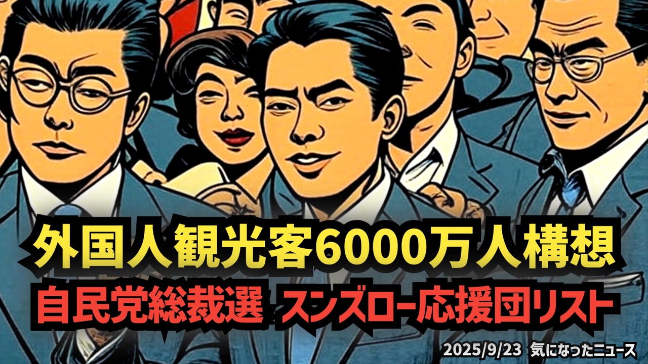 【衆院選の参考にどうぞ】◆自民党総裁選 「セクシー小泉進次郎」選挙対策本部 役員名簿(案)【外国人観光客6000万人構想推進】<br><br>あらすじ<br>自民党総裁選で注目を集める小泉進次郎氏の選挙対策本部の役員名簿(案)が判明。加藤勝信財務大臣や三原じゅん子氏、河野太郎氏ら現職議員多数が参加し、外国人観光客6000万人構想の推進メンバーが明らかになりました。民意とのギャップや現場の動きを整理し、衆院選や総裁選を見極める参考情報としてまとめています。政策や議員の動向を理解したい方に必見の内容です。<br><br>セクシー応援団リスト<a href="https://x.com/Katyushavictria/status/1970181078678937761?t=NePRe2pog0kIjlZFhAtV9w&s=19" target="_blank" rel="noopener nofollow">https://x.com/Katyushavictria/status/1970181078678937761?t=NePRe2pog0kIjlZFhAtV9w&s=19</a><br><br>推薦人リスト<a href="https://x.com/nBwQSzmg3qU2ysd/status/1970057582816657436?t=vTbpeBKQMOAUao0hCFlzKA&s=19" target="_blank" rel="noopener nofollow">https://x.com/nBwQSzmg3qU2ysd/status/1970057582816657436?t=vTbpeBKQMOAUao0hCFlzKA&s=19</a><br><br>セクシー優勢92名<br><a href="https://x.com/ca970008f4/status/1970055708847833527?t=COK9Euf31ZMQWgIacDRLrA&s=19" target="_blank" rel="noopener nofollow">https://x.com/ca970008f4/status/1970055708847833527?t=COK9Euf31ZMQWgIacDRLrA&s=19</a><br><br>◆今回の台本(詳細)<a href="https://keiichiro8140.hatenablog.com/entry/25092333222" target="_blank" rel="noopener nofollow">https://keiichiro8140.hatenablog.com/entry/25092333222</a><br><br>◆YouTubeチャンネル登録よろしくお願いします🙏 <a href="https://www.youtube.com/@K16news888" target="_blank" rel="noopener nofollow">https://www.youtube.com/@K16news888</a><br><br>◆もしも(BAN)の時のためのマイリンク集<a href="https://lit.link/K16_888" target="_blank" rel="noopener nofollow">https://lit.link/K16_888</a><br><br>◆消し込み役員メンバーもどうぞ<a href="https://nico.ms/sm45378324?ref=other_cap_off" target="_blank" rel="noopener nofollow">https://nico.ms/sm45378324?ref=other_cap_off</a><br><br>◆台本(詳細)<a href="https://keiichiro8140.hatenablog.com/entry/25090666888999" target="_blank" rel="noopener nofollow">https://keiichiro8140.hatenablog.com/entry/25090666888999</a><br><br>ご覧いただきありがとうございます<br>m(_ _)m<br><br>気になったニュース 2025/9/23<br><br />著作権、肖像権に配慮して作成しております。<br><br>◆気になったニュースの台本!?<br>メモ代わりに作った台本をそのままあげてます<br><a href="https://keiichiro8140.hatenablog.com/." target="_blank" rel="noopener nofollow">https://keiichiro8140.hatenablog.com/.</a><br><br><br>ここからはシリーズ紹介<br><br><br>◆ ワクチン解毒・デトックス<br><a href="https://x.gd/fZweg" target="_blank" rel="noopener nofollow">https://x.gd/fZweg</a><br><br>◆ウイリアム・マキス博士のがん治療(イベルメクチン・フェンベンダゾール等)<br><a href="https://x.gd/AtFYS" target="_blank" rel="noopener nofollow">https://x.gd/AtFYS</a><br><br>◆予防接種健康被害救済制度<br><a href="https://x.gd/0xK9x" target="_blank" rel="noopener nofollow">https://x.gd/0xK9x</a><br><br>◆気になったニュース #1501~<br><br>◆ 【ショートver】気になったニュース<br><a href="https://x.gd/7MxXC" target="_blank" rel="noopener nofollow">https://x.gd/7MxXC</a><br><br>◆ 気になったニュース #1001~<br><a href="https://x.gd/Lp8gv" target="_blank" rel="noopener nofollow">https://x.gd/Lp8gv</a><br><br>◆ 気になったニュース #501~<br><a href="https://x.gd/EmbS4" target="_blank" rel="noopener nofollow">https://x.gd/EmbS4</a><br><br>◆ 気になったニュース #1~#500<br><a href="https://x.gd/uPhNb" target="_blank" rel="noopener nofollow">https://x.gd/uPhNb</a><br><br>◆ X(旧Twitter)・テレグラムで気になった情報<br><a href="https://x.gd/YG6FT" target="_blank" rel="noopener nofollow">https://x.gd/YG6FT</a><br><br>◆ 日比谷5万人パレードデ⚪生放送アーカイブ動画<br><a href="https://x.gd/3CHJv" target="_blank" rel="noopener nofollow">https://x.gd/3CHJv</a><br><br>◆日比谷5万人パレード⚪モのマイリスト作ってみました<br><a href="https://nico.ms/mylist/76828848?ref=sp_other" target="_blank" rel="noopener nofollow">https://nico.ms/mylist/76828848?ref=sp_other</a><br><br>◆3.30 令和の百姓⚪⚪<br><a href="https://www.nicovideo.jp/series/511791?ref=garage_share_other" target="_blank" rel="noopener nofollow">https://www.nicovideo.jp/series/511791?ref=garage_share_other</a><br><br>◆ 及川幸久さんの【XNEWS】シリーズ<br><a href="https://x.gd/3k78K" target="_blank" rel="noopener nofollow">https://x.gd/3k78K</a><br><br>◆これまでの動画<a href="https://x.gd/sPXoJ" target="_blank" rel="noopener nofollow">https://x.gd/sPXoJ</a><br><br>◆もしも(BAN)の時のためのマイリンク集<a href="https://lit.link/K-16_News44" target="_blank" rel="noopener nofollow">https://lit.link/K-16_News44</a><br><br>