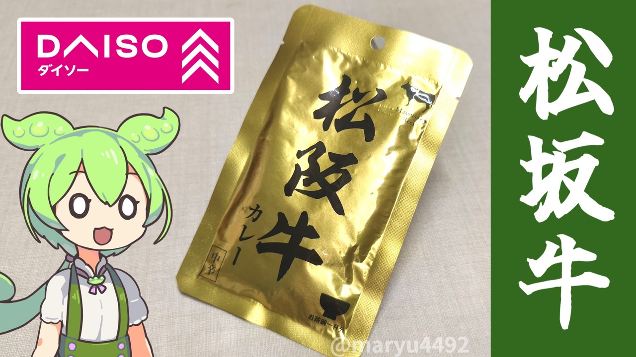 金ぴかの袋に入った松坂牛入りのカレーだそうです。<br><br><br>【参考】<br>株式会社一・はじめの情報(公益社団法人 宮崎県物産貿易公益センター)<br><a href="https://www.m-tokusan.or.jp/kensan/225710912/" target="_blank" rel="noopener nofollow">https://www.m-tokusan.or.jp/kensan/225710912/</a><br>有限会社伊藤牧場<br><a href="https://yakinikuito.com/company/" target="_blank" rel="noopener nofollow">https://yakinikuito.com/company/</a><br>株式会社 響<br><a href="https://www.hibikitaikoya.com/" target="_blank" rel="noopener nofollow">https://www.hibikitaikoya.com/</a><br>松阪牛ビーフカレー(パウチ)(株式会社 響)<br><a href="https://hibiki.easy-myshop.jp/c-item-detail?ic=A000000098" target="_blank" rel="noopener nofollow">https://hibiki.easy-myshop.jp/c-item-detail?ic=A000000098</a><br><br>【使用した素材】(※敬称略) <br>(合成音声)VOICEVOX/ずんだもん<br><a href="https://voicevox.hiroshiba.jp/" target="_blank" rel="noopener nofollow">https://voicevox.hiroshiba.jp/</a> <br>(立ち絵)坂本アヒル<br> <a href="https://seiga.nicovideo.jp/seiga/im10788496?track" target="_blank" rel="noopener nofollow">https://seiga.nicovideo.jp/seiga/im10788496?track</a><br>(楽曲)甘茶の音楽工房/「楽しい麦畑」「フルーツパフェ」「お城の舞踏会」<br><a href="https://amachamusic.chagasi.com/" target="_blank" rel="noopener nofollow">https://amachamusic.chagasi.com/</a>
