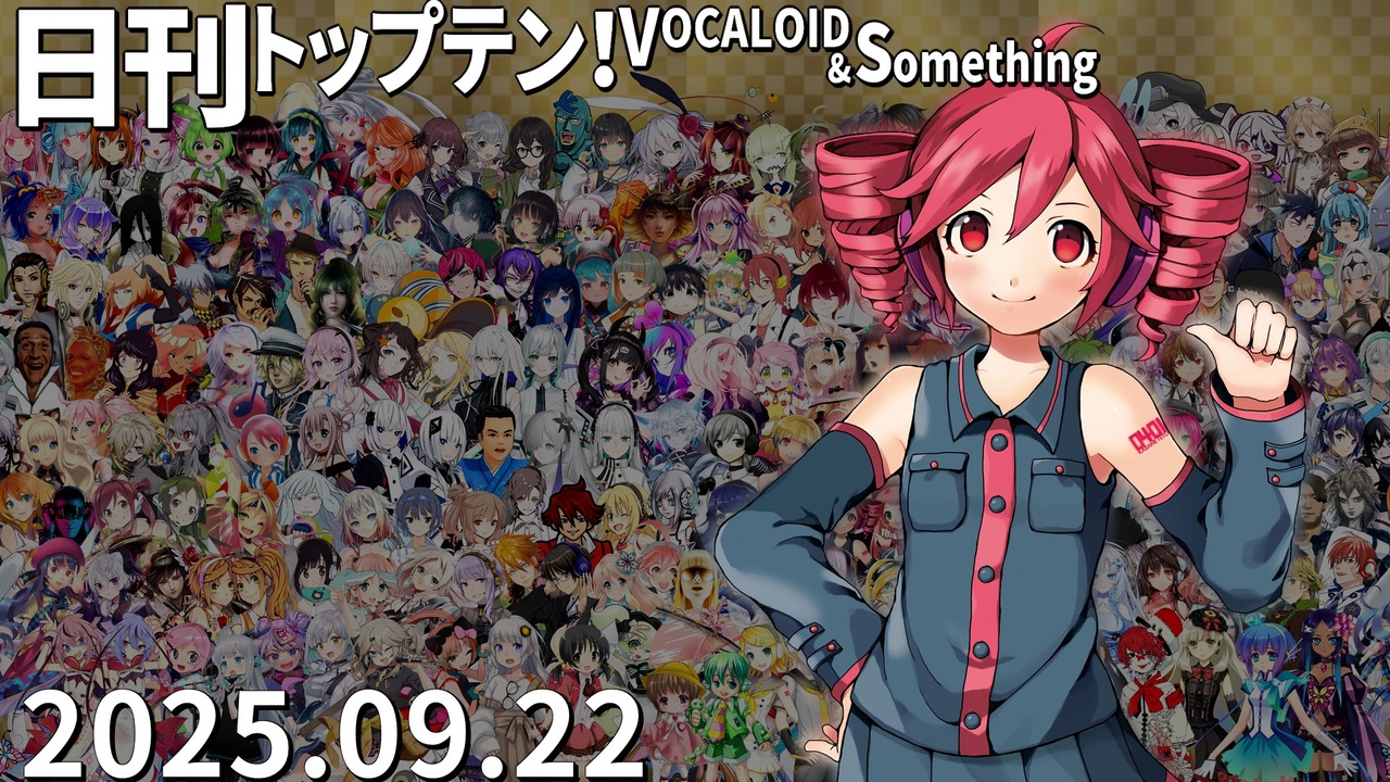 前日(9/21)←<a href="https://www.nicovideo.jp/watch/sm45435462" class="watch">sm45435462</a> <a href="https://www.nicovideo.jp/watch/sm45437284" class="watch">sm45437284</a>→翌日(9/23)<br>★ボカコレアプリ字幕機能に対応!<br>Android <a href="https://play.google.com/store/apps/details?id=jp.nicovideo.nicobox&hl=ja" target="_blank" rel="noopener nofollow">https://play.google.com/store/apps/details?id=jp.nicovideo.nicobox&hl=ja</a><br>iOS <a href="https://apps.apple.com/jp/app/id421753493" target="_blank" rel="noopener nofollow">https://apps.apple.com/jp/app/id421753493</a><br><br>★チャプター<br>昨日1位<a href="#" class="seekTime" data-seekTime="0:00" onclick="seekNicoPlayer('#0:00'); return false;">#0:00</a> TOP10<a href="#" class="seekTime" data-seekTime="0:36" onclick="seekNicoPlayer('#0:36'); return false;">#0:36</a> 1年前<a href="#" class="seekTime" data-seekTime="2:56" onclick="seekNicoPlayer('#2:56'); return false;">#2:56</a> TOP3<a href="#" class="seekTime" data-seekTime="3:24" onclick="seekNicoPlayer('#3:24'); return false;">#3:24</a> 10年前<a href="#" class="seekTime" data-seekTime="4:59" onclick="seekNicoPlayer('#4:59'); return false;">#4:59</a> PICKUP<a href="#" class="seekTime" data-seekTime="5:27" onclick="seekNicoPlayer('#5:27'); return false;">#5:27</a> <br><br>★トップテン<br>10:<a href="https://www.nicovideo.jp/watch/sm45398661" class="watch">sm45398661</a> 9:<a href="https://www.nicovideo.jp/watch/sm45423035" class="watch">sm45423035</a> 8:<a href="https://www.nicovideo.jp/watch/sm45420527" class="watch">sm45420527</a> 7:<a href="https://www.nicovideo.jp/watch/sm45425792" class="watch">sm45425792</a> <br>6:<a href="https://www.nicovideo.jp/watch/sm45416972" class="watch">sm45416972</a> 5:<a href="https://www.nicovideo.jp/watch/sm45379528" class="watch">sm45379528</a> 4:<a href="https://www.nicovideo.jp/watch/sm45423567" class="watch">sm45423567</a> 3:<a href="https://www.nicovideo.jp/watch/sm45423965" class="watch">sm45423965</a> 2:<a href="https://www.nicovideo.jp/watch/sm45417058" class="watch">sm45417058</a> 1:<a href="https://www.nicovideo.jp/watch/sm45423438" class="watch">sm45423438</a> <br><br>★ピックアップ(B~Dは超新着枠)<br>B:<a href="https://www.nicovideo.jp/watch/sm45426216" class="watch">sm45426216</a> C:<a href="https://www.nicovideo.jp/watch/sm45424501" class="watch">sm45424501</a> D:<a href="https://www.nicovideo.jp/watch/sm45427905" class="watch">sm45427905</a> E:<a href="https://www.nicovideo.jp/watch/sm45415046" class="watch">sm45415046</a> F:<a href="https://www.nicovideo.jp/watch/sm45406964" class="watch">sm45406964</a> <br><br>★プレイバック <br>A(1年前):<a href="https://www.nicovideo.jp/watch/sm44131147" class="watch">sm44131147</a> 十(10年前):<a href="https://www.nicovideo.jp/watch/sm27211379" class="watch">sm27211379</a> 前日の第1位: <a href="https://www.nicovideo.jp/watch/sm45423091" class="watch">sm45423091</a>(重音テト)<br><br>☆集計対象:2025/9/15~22 5時投稿の作品(9/22 5時集計)<br>★計算式:再生×1+コメント×最大12+いいね!×14+マイリスト×12<br>☆プレイリスト:<u><a href="https://nikkantop10.hatenablog.com/entry/ar20250922" target="_blank" rel="noopener nofollow">https://nikkantop10.hatenablog.com/entry/ar20250922</a></u> 、 <a href="https://www.nicovideo.jp/mylist/49271984" target="_blank" rel="noopener">mylist/49271984</a> <br>★1年前トップテン:<a href="https://www.nicovideo.jp/watch/sm44134241" class="watch">sm44134241</a><br />★日刊トップテン動画一覧マイリスト:<a href="https://www.nicovideo.jp/mylist/47849908" target="_blank" rel="noopener">mylist/47849908</a><br>☆ルールや計算式の詳細:<a href="https://nikkantop10-sub.hatenablog.com/entry/top10_rule" target="_blank" rel="noopener nofollow">https://nikkantop10-sub.hatenablog.com/entry/top10_rule</a><br><span style="color: #262626;">★K!!te Playlist LINK!:<a href="https://kiite.jp/user/AIST_playlist_bot" target="_blank" rel="noopener nofollow">https://kiite.jp/user/AIST_playlist_bot</a><br>☆Twitter:<a href="https://twitter.com/VOCALO_NEWRANK" target="_blank" rel="noopener nofollow">https://twitter.com/VOCALO_NEWRANK</a><br>★Thread:<a href="https://www.threads.net/@lukanan_p" target="_blank" rel="noopener nofollow">https://www.threads.net/@lukanan_p</a></span><br><br><span style="color: #0000ff;"><strong>◆今後の動画投稿イベント情報</strong></span><br>2025/12/29~31 <strong>先端映像音楽表現投稿祭</strong> <a href="https://twipla.jp/events/678401" target="_blank" rel="noopener nofollow">https://twipla.jp/events/678401</a><br>2026/1/1~4 <strong>ボカロサビ投稿祭2026 </strong><a href="https://twipla.jp/events/705936" target="_blank" rel="noopener nofollow">https://twipla.jp/events/705936</a> ※既存曲は新規投稿で参加可<br>2026/1/10~12 <strong>ポストロック投稿祭 </strong><a href="https://twipla.jp/events/694939" target="_blank" rel="noopener nofollow">https://twipla.jp/events/694939</a>