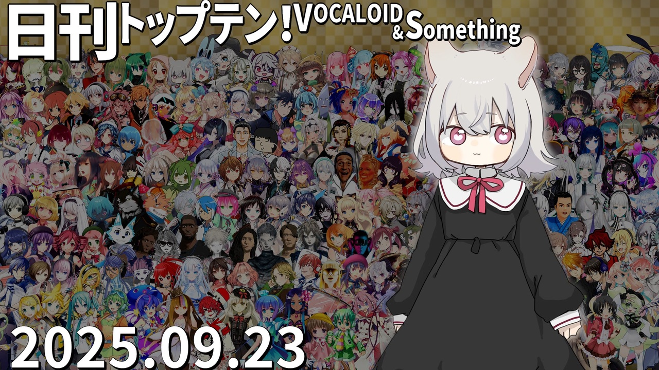 前日(9/22)←<a href="https://www.nicovideo.jp/watch/sm45436410" class="watch">sm45436410</a> <a href="https://www.nicovideo.jp/watch/sm45439974" class="watch">sm45439974</a>→翌日(9/24)<br>★初登場や久々紹介となる投稿者の作品をXでまとめて確認できます!<a href="https://tinyurl.com/j683988a" target="_blank" rel="noopener nofollow">https://tinyurl.com/j683988a</a><br><br>★チャプター<br>昨日1位<a href="#" class="seekTime" data-seekTime="0:00" onclick="seekNicoPlayer('#0:00'); return false;">#0:00</a> TOP10<a href="#" class="seekTime" data-seekTime="0:36" onclick="seekNicoPlayer('#0:36'); return false;">#0:36</a> 1年前<a href="#" class="seekTime" data-seekTime="2:56" onclick="seekNicoPlayer('#2:56'); return false;">#2:56</a> TOP3<a href="#" class="seekTime" data-seekTime="3:24" onclick="seekNicoPlayer('#3:24'); return false;">#3:24</a> 10年前<a href="#" class="seekTime" data-seekTime="4:55" onclick="seekNicoPlayer('#4:55'); return false;">#4:55</a> PICKUP<a href="#" class="seekTime" data-seekTime="5:23" onclick="seekNicoPlayer('#5:23'); return false;">#5:23</a> <br><br>★トップテン<br>10:<a href="https://www.nicovideo.jp/watch/sm45401935" class="watch">sm45401935</a> 9:<a href="https://www.nicovideo.jp/watch/sm45430937" class="watch">sm45430937</a> 8:<a href="https://www.nicovideo.jp/watch/sm45392796" class="watch">sm45392796</a> 7:<a href="https://www.nicovideo.jp/watch/sm45419871" class="watch">sm45419871</a> <br>6:<a href="https://www.nicovideo.jp/watch/sm45369996" class="watch">sm45369996</a> 5:<a href="https://www.nicovideo.jp/watch/sm45426216" class="watch">sm45426216</a> 4:<a href="https://www.nicovideo.jp/watch/sm45430713" class="watch">sm45430713</a> 3:<a href="https://www.nicovideo.jp/watch/sm45411315" class="watch">sm45411315</a> 2:<a href="https://www.nicovideo.jp/watch/sm45425792" class="watch">sm45425792</a> 1:<a href="https://www.nicovideo.jp/watch/sm45427905" class="watch">sm45427905</a> <br><br>★ピックアップ(B~Gは超新着枠)<br>B:<a href="https://www.nicovideo.jp/watch/sm45431733" class="watch">sm45431733</a> C:<a href="https://www.nicovideo.jp/watch/sm45430540" class="watch">sm45430540</a> D:<a href="https://www.nicovideo.jp/watch/sm45398175" class="watch">sm45398175</a> E:<a href="https://www.nicovideo.jp/watch/sm45430502" class="watch">sm45430502</a> F:<a href="https://www.nicovideo.jp/watch/sm45375534" class="watch">sm45375534</a> G:<a href="https://www.nicovideo.jp/watch/sm45430981" class="watch">sm45430981</a> <br>H:<a href="https://www.nicovideo.jp/watch/sm45418380" class="watch">sm45418380</a> I:<a href="https://www.nicovideo.jp/watch/sm45408828" class="watch">sm45408828</a> J:<a href="https://www.nicovideo.jp/watch/sm45408610" class="watch">sm45408610</a> K:<a href="https://www.nicovideo.jp/watch/sm45422287" class="watch">sm45422287</a> L:<a href="https://www.nicovideo.jp/watch/sm45405943" class="watch">sm45405943</a> <br><br>★プレイバック <br>A(1年前):<a href="https://www.nicovideo.jp/watch/sm44136954" class="watch">sm44136954</a> 十(10年前):<a href="https://www.nicovideo.jp/watch/sm27220524" class="watch">sm27220524</a> 前日の第1位: <a href="https://www.nicovideo.jp/watch/sm45423438" class="watch">sm45423438</a>(小夜)<br><br>☆集計対象:2025/9/16~23 5時投稿の作品(9/23 5時集計)<br>★計算式:再生×1+コメント×最大12+いいね!×23+マイリスト×13<br>☆プレイリスト:<u><a href="https://nikkantop10.hatenablog.com/entry/ar20250923" target="_blank" rel="noopener nofollow">https://nikkantop10.hatenablog.com/entry/ar20250923</a></u> 、 <a href="https://www.nicovideo.jp/mylist/49271984" target="_blank" rel="noopener">mylist/49271984</a> <br>★1年前トップテン:<a href="https://www.nicovideo.jp/watch/sm44139724" class="watch">sm44139724</a><br />★日刊トップテン動画一覧マイリスト:<a href="https://www.nicovideo.jp/mylist/47849908" target="_blank" rel="noopener">mylist/47849908</a><br>☆ルールや計算式の詳細:<a href="https://nikkantop10-sub.hatenablog.com/entry/top10_rule" target="_blank" rel="noopener nofollow">https://nikkantop10-sub.hatenablog.com/entry/top10_rule</a><br><span style="color: #262626;">★K!!te Playlist LINK!:<a href="https://kiite.jp/user/AIST_playlist_bot" target="_blank" rel="noopener nofollow">https://kiite.jp/user/AIST_playlist_bot</a><br>☆Twitter:<a href="https://twitter.com/VOCALO_NEWRANK" target="_blank" rel="noopener nofollow">https://twitter.com/VOCALO_NEWRANK</a><br>★Thread:<a href="https://www.threads.net/@lukanan_p" target="_blank" rel="noopener nofollow">https://www.threads.net/@lukanan_p</a></span><br><br><span style="color: #0000ff;"><strong>◆今後の動画投稿イベント情報</strong></span><br>2025/12/29~31 <strong>先端映像音楽表現投稿祭</strong> <a href="https://twipla.jp/events/678401" target="_blank" rel="noopener nofollow">https://twipla.jp/events/678401</a><br>2026/1/1~4 <strong>ボカロサビ投稿祭2026 </strong><a href="https://twipla.jp/events/705936" target="_blank" rel="noopener nofollow">https://twipla.jp/events/705936</a> ※既存曲は新規投稿で参加可<br>2026/1/10~12 <strong>ポストロック投稿祭 </strong><a href="https://twipla.jp/events/694939" target="_blank" rel="noopener nofollow">https://twipla.jp/events/694939</a>