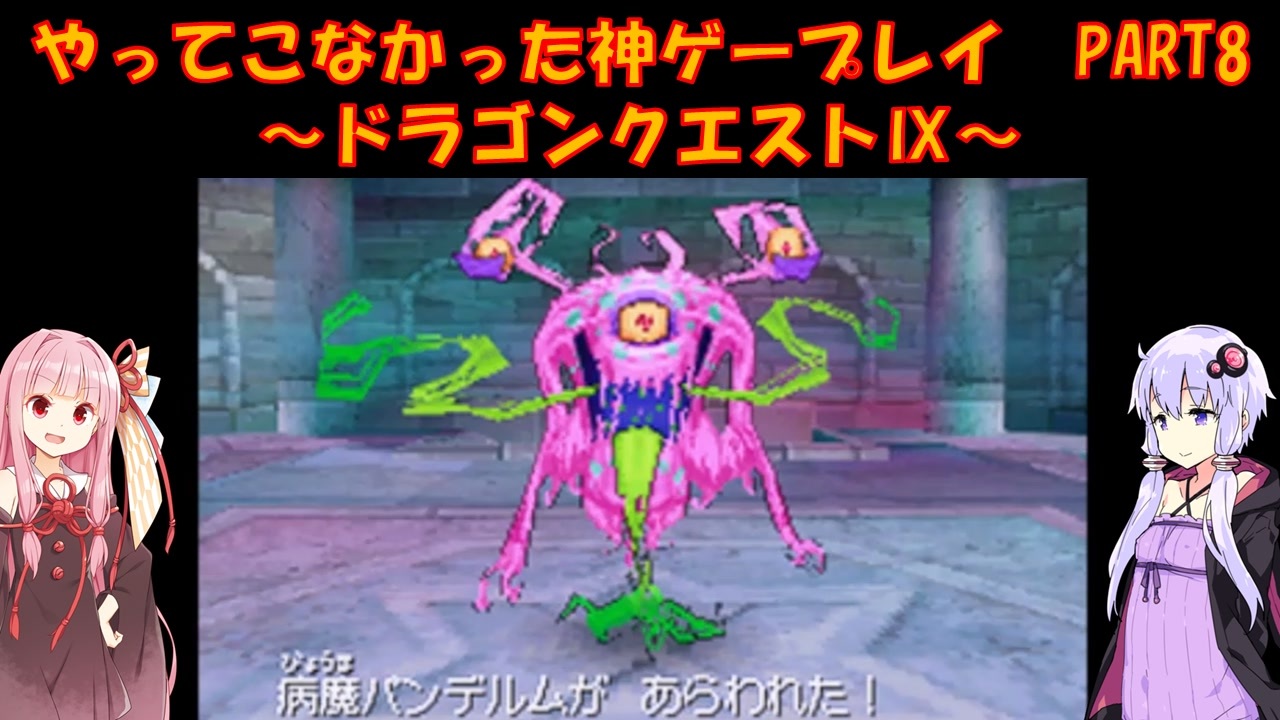 ニンテンドーDS ドラゴンクエストⅨをプレイ<br>ゆかりさんはメジャーじゃないゲームをやる俺カッケー族だったのでドラクエをやったことがありませんでした(DSのⅤ以外)<br><br>ゆ:妖怪のせいなのね<br>茜:せやろか?<br><br>PART1:<a href="https://www.nicovideo.jp/watch/sm45383595" target="_blank" rel="noopener nofollow">https://www.nicovideo.jp/watch/sm45383595</a><br><br>各DQシリーズ再生リスト<br><a href="https://garage.nicovideo.jp/niconico-garage/video/series/390298" target="_blank" rel="noopener nofollow">https://garage.nicovideo.jp/niconico-garage/video/series/390298</a><br><br>動画内で使用させていただいた素材<br>【イラスト】<br>結月ゆかり→ペテン師様:<a href="https://seiga.nicovideo.jp/seiga/im5494168" target="_blank" rel="noopener nofollow">https://seiga.nicovideo.jp/seiga/im5494168</a><br>琴葉茜→ユメのオワリ様:<a href="https://seiga.nicovideo.jp/seiga/im10706241" target="_blank" rel="noopener nofollow">https://seiga.nicovideo.jp/seiga/im10706241</a><br><br>【音声】<br>A.I.Voice:琴葉茜<br><a href="https://aivoice.jp/product/kotonoha/" target="_blank" rel="noopener nofollow">https://aivoice.jp/product/kotonoha/</a><br><br>A.I.Voice:結月ゆかり<br><a href="https://aivoice.jp/product/yukari/" target="_blank" rel="noopener nofollow">https://aivoice.jp/product/yukari/</a><br><br>【その他素材】<br><br>この動画で利用している株式会社スクウェア・エニックスを代表とする共同著作者が権利を所有する著作物及びスギヤマ工房有限会社が権利を所有する楽曲の転載・配布は禁止いたします。<br>© 2009 ARMOR PROJECT/BIRD STUDIO/LEVEL-5/SQUARE ENIX All Rights Reserved.<br>© SUGIYAMA KOBO<br>Ⓟ SUGIYAMA KOBO