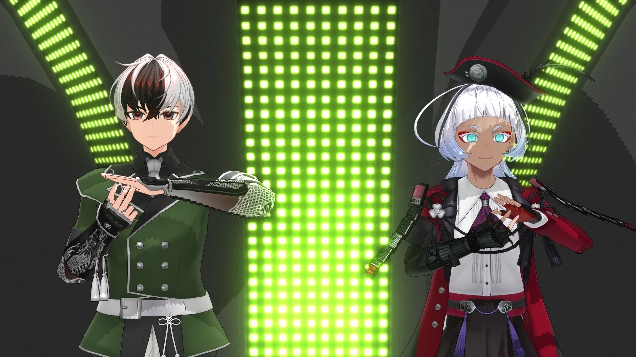 おナス様が本日倶利伽羅江くんのモデルを配布してくれたので、早速踊って貰いました。他の方が倶利伽羅江くんを自作して踊らせていた動画は拝見していたのですが、その方はモデルを配布していなかったので、踊らせてみたいけど、踊らせることができませんでした。おナス様、モデル配布ありがとうございますm(__)m<br><br> 倶利伽羅江くんの動画を拝見した際にいつか配布されたら九鬼正宗くんと一緒に踊って貰いたいという思いが強く、この動画を作成しました。関係性は無いかもしれないですが、一緒に踊らせることができてとても嬉しかったです(^-^)<br><br> なんとか倶利伽羅江くんをゲーム本丸にも迎え入れることが出来ました。(とても大変だった(-_-;))その結果初めて江の刀を全振り迎え入れることが出来ました。短刀極+大太刀極は強いですね。<br><br>サムネイルのポーズは弊本丸のユニット(弊MMD本丸は独自の事務所形態の本丸のためその他のユニット構成やメンバーはプロフィールを見て下さい)Token Japanの決めポーズであるTJ(Token Japan)ポーズです。<br><br>これまでの動画に広告、コメント、マイリスト登録して下さったみなさま、ありがとうございます。励みになります。<br><br>投稿マイリス→ <a href="https://www.nicovideo.jp/mylist/60455525" target="_blank" rel="noopener">mylist/60455525</a><br><br><span style="color: #ff0000; font-size: 16px;">注意</span><br>*外套無しモデルを使用しております。<br><br><span style="color: #38761d; font-size: 16px;">お借りしたもの</span><br>モデル:おナス様<br>モーション:エバ様、さわ様<br>表情・カメラ:だんしゃくいも様(改変)<br>ステージ:まきろん様、Cyalon様(サイバーカジノステージ( <a href="https://seiga.nicovideo.jp/seiga/im11018714" target="_blank" rel="noopener">im11018714</a> )<br>エフェクト:そぼろ様、針金P様、ラテ様<br>曲:EasyPop様<br><span style="color: #9900ff;"> </span><span style="color: #00ffff;"> </span><span style="color: #38761d;">ありがとうございました。</span><br><br><span style="color: #990000; font-size: 16px;">使用したもの</span><br><span style="color: #262626;">Miku Miku Dance、After Effects</span><br>