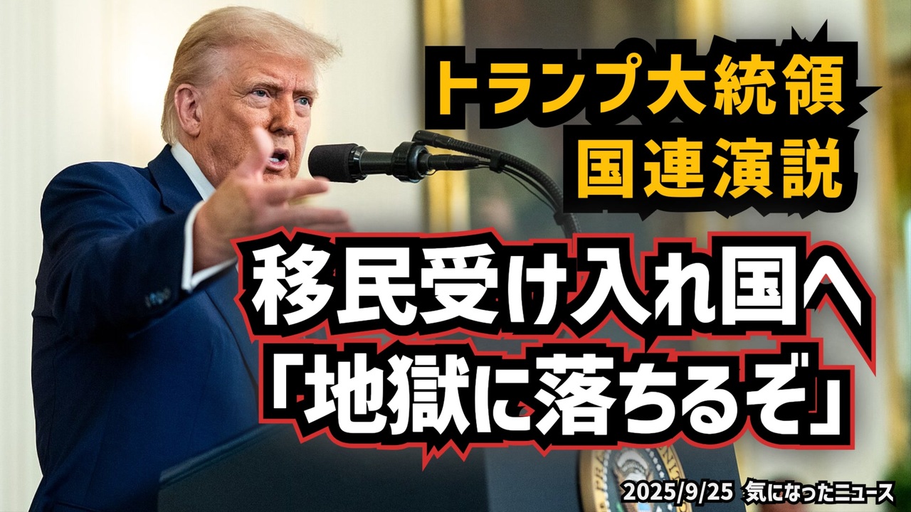 ◆トランプ大統領 国連演説、移民受け入れ国へ「地獄に落ちるぞ」<br><br>トランプ大統領が国連総会で放った演説は、報道見出しの「地獄に落ちるぞ」だけでは語り尽くせません。実際には、国連が巨額予算を移民支援に投じた事実や、数字を伴う具体的な批判が中心でした。本動画では、演説の核心とメディア報道の差を整理し、見落とされがちな実態をわかりやすく解説します。切り取られた部分にこそ、世界の移民問題を読み解く鍵があるのです。<a href="https://x.com/LSH__Official/status/1970655479283212457?t=IalfS1sEjthRj3D5sognZw&s=19" target="_blank" rel="noopener nofollow">https://x.com/LSH__Official/status/1970655479283212457?t=IalfS1sEjthRj3D5sognZw&s=19</a><br><br>いい記事ですがカット部分が重要<a href="https://news.yahoo.co.jp/articles/6f3c84983b4b042ac79d27afa3e59b978d68cf7b" target="_blank" rel="noopener nofollow">https://news.yahoo.co.jp/articles/6f3c84983b4b042ac79d27afa3e59b978d68cf7b</a><br><br><a href="https://x.gd/9Aae2" target="_blank" rel="noopener nofollow">https://x.gd/9Aae2</a><br>⬆野口健 狂気の沙汰で検索 (消し込まれたスンズロー外国人観光客6000万人発言が出てきます)<br><br>◆今回の台本(詳細)<a href="https://keiichiro8140.hatenablog.com/entry/25092555111" target="_blank" rel="noopener nofollow">https://keiichiro8140.hatenablog.com/entry/25092555111</a><br><br>◆YouTubeチャンネル登録よろしくお願いします🙏 <a href="https://www.youtube.com/@K16news888" target="_blank" rel="noopener nofollow">https://www.youtube.com/@K16news888</a><br><br>◆もしも(BAN)の時のためのマイリンク集<a href="https://lit.link/K16_888" target="_blank" rel="noopener nofollow">https://lit.link/K16_888</a><br><br>ご覧いただきありがとうございます<br>m(_ _)m<br>気になったニュース 2025/9/25<br><br />著作権、肖像権に配慮して作成しております。<br><br>◆気になったニュースの台本!?<br>メモ代わりに作った台本をそのままあげてます<br><a href="https://keiichiro8140.hatenablog.com/." target="_blank" rel="noopener nofollow">https://keiichiro8140.hatenablog.com/.</a><br><br><br>ここからはシリーズ紹介<br><br><br>◆ ワクチン解毒・デトックス<br><a href="https://x.gd/fZweg" target="_blank" rel="noopener nofollow">https://x.gd/fZweg</a><br><br>◆ウイリアム・マキス博士のがん治療(イベルメクチン・フェンベンダゾール等)<br><a href="https://x.gd/AtFYS" target="_blank" rel="noopener nofollow">https://x.gd/AtFYS</a><br><br>◆予防接種健康被害救済制度<br><a href="https://x.gd/0xK9x" target="_blank" rel="noopener nofollow">https://x.gd/0xK9x</a><br><br>◆気になったニュース #1501~<br><br>◆ 【ショートver】気になったニュース<br><a href="https://x.gd/7MxXC" target="_blank" rel="noopener nofollow">https://x.gd/7MxXC</a><br><br>◆ 気になったニュース #1001~<br><a href="https://x.gd/Lp8gv" target="_blank" rel="noopener nofollow">https://x.gd/Lp8gv</a><br><br>◆ 気になったニュース #501~<br><a href="https://x.gd/EmbS4" target="_blank" rel="noopener nofollow">https://x.gd/EmbS4</a><br><br>◆ 気になったニュース #1~#500<br><a href="https://x.gd/uPhNb" target="_blank" rel="noopener nofollow">https://x.gd/uPhNb</a><br><br>◆ X(旧Twitter)・テレグラムで気になった情報<br><a href="https://x.gd/YG6FT" target="_blank" rel="noopener nofollow">https://x.gd/YG6FT</a><br><br>◆ 日比谷5万人パレードデ⚪生放送アーカイブ動画<br><a href="https://x.gd/3CHJv" target="_blank" rel="noopener nofollow">https://x.gd/3CHJv</a><br><br>◆日比谷5万人パレード⚪モのマイリスト作ってみました<br><a href="https://nico.ms/mylist/76828848?ref=sp_other" target="_blank" rel="noopener nofollow">https://nico.ms/mylist/76828848?ref=sp_other</a><br><br>◆3.30 令和の百姓⚪⚪<br><a href="https://www.nicovideo.jp/series/511791?ref=garage_share_other" target="_blank" rel="noopener nofollow">https://www.nicovideo.jp/series/511791?ref=garage_share_other</a><br><br>◆ 及川幸久さんの【XNEWS】シリーズ<br><a href="https://x.gd/3k78K" target="_blank" rel="noopener nofollow">https://x.gd/3k78K</a><br><br>◆これまでの動画<a href="https://x.gd/sPXoJ" target="_blank" rel="noopener nofollow">https://x.gd/sPXoJ</a><br><br>◆もしも(BAN)の時のためのマイリンク集<a href="https://lit.link/K-16_News44" target="_blank" rel="noopener nofollow">https://lit.link/K-16_News44</a><br><br>