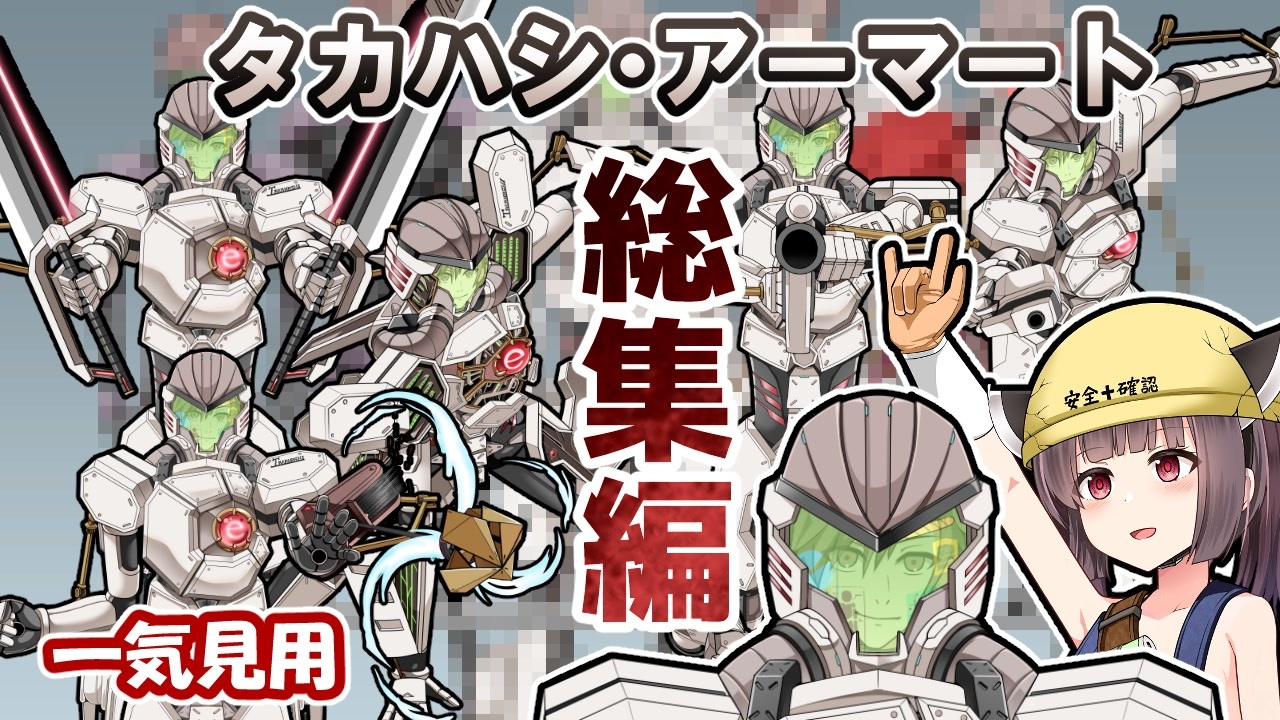 タカハシくんの誕生日ということで、子作品が増える度に装備が増えるアーマートの一気見用の総集編をご用意しました。<br>アーマートの立ち絵→<a href="https://seiga.nicovideo.jp/seiga/im11275606" target="_blank" rel="noopener">im11275606</a><br>メカニックきりたんの立ち絵→<a href="https://seiga.nicovideo.jp/seiga/im11549419" target="_blank" rel="noopener">im11549419</a><br><br>いいねには製作中に起きてしまったトラブルを書いておきます。<br><br>立ち絵置き場→<a href="https://g4plxkdg.fanbox.cc/" target="_blank" rel="noopener nofollow">https://g4plxkdg.fanbox.cc/</a><br>コモンズのマイページ→<a href="https://commons.nicovideo.jp/users/8327985" target="_blank" rel="noopener nofollow">https://commons.nicovideo.jp/users/8327985</a><br>booth→<a href="https://azuki-shark.booth.pm/" target="_blank" rel="noopener nofollow">https://azuki-shark.booth.pm/</a><br>ついった→<a href="https://twitter.com/azukiranatuine" target="_blank" rel="noopener nofollow">https://twitter.com/azukiranatuine</a><br>今までに投稿した動画→<a href="https://www.nicovideo.jp/mylist/8362939" target="_blank" rel="noopener">mylist/8362939</a><br>投稿者たるアズキのskebマイページ→<a href="https://skeb.jp/@azukiranatuine" target="_blank" rel="noopener nofollow">https://skeb.jp/@azukiranatuine</a>