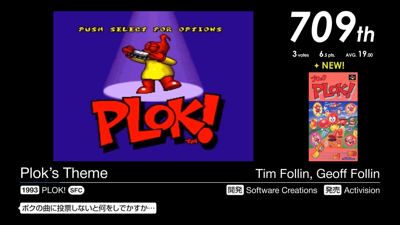 723位~701位の24曲を収録。<br><br>2024年6月11日~2024年8月1日で行われた「第17回みんなで決めるゲーム音楽ベスト100」の投票結果動画です。集計人≠動画制作者<br>第18回の結果が確定しました。集計お疲れさまでした!<br><br><a href="https://www.nicovideo.jp/watch/sm45421584" class="watch">sm45421584</a>←前 次→<a href="https://www.nicovideo.jp/watch/sm45474961" class="watch">sm45474961</a><br><a href="https://www.nicovideo.jp/mylist/78315745" target="_blank" rel="noopener">mylist/78315745</a> <a href="https://www.nicovideo.jp/series/523562" target="_blank" rel="noopener">series/523562</a><br><br>723位 <a href="#" class="seekTime" data-seekTime="0:40" onclick="seekNicoPlayer('#0:40'); return false;">#0:40</a>, <a href="#" class="seekTime" data-seekTime="5:50" onclick="seekNicoPlayer('#5:50'); return false;">#5:50</a> / 722位 <a href="#" class="seekTime" data-seekTime="8:14" onclick="seekNicoPlayer('#8:14'); return false;">#8:14</a> / 721位 <a href="#" class="seekTime" data-seekTime="12:05" onclick="seekNicoPlayer('#12:05'); return false;">#12:05</a> / 720位 <a href="#" class="seekTime" data-seekTime="14:07" onclick="seekNicoPlayer('#14:07'); return false;">#14:07</a> / 719位 <a href="#" class="seekTime" data-seekTime="16:48" onclick="seekNicoPlayer('#16:48'); return false;">#16:48</a> / 718位 <a href="#" class="seekTime" data-seekTime="20:14" onclick="seekNicoPlayer('#20:14'); return false;">#20:14</a> / 717位 <a href="#" class="seekTime" data-seekTime="23:12" onclick="seekNicoPlayer('#23:12'); return false;">#23:12</a> / 716位 <a href="#" class="seekTime" data-seekTime="27:20" onclick="seekNicoPlayer('#27:20'); return false;">#27:20</a> / 715位 <a href="#" class="seekTime" data-seekTime="29:38" onclick="seekNicoPlayer('#29:38'); return false;">#29:38</a> / 714位 <a href="#" class="seekTime" data-seekTime="31:09" onclick="seekNicoPlayer('#31:09'); return false;">#31:09</a> / 713位 <a href="#" class="seekTime" data-seekTime="33:16" onclick="seekNicoPlayer('#33:16'); return false;">#33:16</a> / 712位 <a href="#" class="seekTime" data-seekTime="37:11" onclick="seekNicoPlayer('#37:11'); return false;">#37:11</a> / 710位 <a href="#" class="seekTime" data-seekTime="39:42" onclick="seekNicoPlayer('#39:42'); return false;">#39:42</a>, <a href="#" class="seekTime" data-seekTime="42:26" onclick="seekNicoPlayer('#42:26'); return false;">#42:26</a> / 709位 <a href="#" class="seekTime" data-seekTime="46:11" onclick="seekNicoPlayer('#46:11'); return false;">#46:11</a> / 707位 <a href="#" class="seekTime" data-seekTime="49:40" onclick="seekNicoPlayer('#49:40'); return false;">#49:40</a>, <a href="#" class="seekTime" data-seekTime="53:22" onclick="seekNicoPlayer('#53:22'); return false;">#53:22</a> / 705位 <a href="#" class="seekTime" data-seekTime="57:36" onclick="seekNicoPlayer('#57:36'); return false;">#57:36</a>, <a href="#" class="seekTime" data-seekTime="61:00" onclick="seekNicoPlayer('#61:00'); return false;">#61:00</a> / 701位 <a href="#" class="seekTime" data-seekTime="63:38" onclick="seekNicoPlayer('#63:38'); return false;">#63:38</a>, <a href="#" class="seekTime" data-seekTime="65:50" onclick="seekNicoPlayer('#65:50'); return false;">#65:50</a>, <a href="#" class="seekTime" data-seekTime="69:35" onclick="seekNicoPlayer('#69:35'); return false;">#69:35</a>, <a href="#" class="seekTime" data-seekTime="73:34" onclick="seekNicoPlayer('#73:34'); return false;">#73:34</a><br><br>----------<br><br>スクリーンショット募集中!詳細はこちら↓<br><a href="https://gamemusic17.vercel.app/" target="_blank" rel="noopener nofollow">https://gamemusic17.vercel.app/</a><br><br>結果詳細↓<br><a href="https://w.atwiki.jp/gamemusicbest100/pages/10538.html" target="_blank" rel="noopener nofollow">https://w.atwiki.jp/gamemusicbest100/pages/10538.html</a><br /><br>----------<br><br>第2回みんなで決める和風曲ランキング 2/28まで投票受付中!<br><a href="https://jbbs.shitaraba.net/bbs/read.cgi/music/25545/1764514793/" target="_blank" rel="noopener nofollow">https://jbbs.shitaraba.net/bbs/read.cgi/music/25545/1764514793/</a><br><br>みんなで決める2025年の新曲ゲーム音楽ランキング 3/31まで投票受付中!<br><a href="https://jbbs.shitaraba.net/bbs/read.cgi/music/25545/1769870472/" target="_blank" rel="noopener nofollow">https://jbbs.shitaraba.net/bbs/read.cgi/music/25545/1769870472/</a>