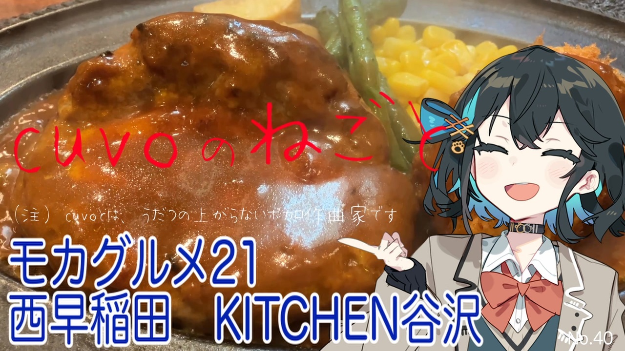 こんにちは!<br>cuvoのねごと、第40回です!<br><br>シリーズ「モカグルメ」の<br>第21弾をお届けします!<br><br>今回は西早稲田にある<br>KITCHEN谷沢に行ってきました<br><br>ハンバーグとクリームコロッケを<br>食べてきましたよー!<br><br>「これが至福ってやつですかぁ!」<br><br>気になった方は、ぜひ行ってみてくださいね!<br><br>ーーーーーーー<br>▼Xで発信中!cuvoのねごと<br><a href="https://twitter.com/cuvo_jpn" target="_blank" rel="noopener nofollow">https://twitter.com/cuvo_jpn</a><br><br><br>▼エンディングテーマ<br>「飲みに行こう」<br>曲:cuvo / 詞:vie<br>歌:seven(neutrino)<br><br>↓ニコ動<br><a href="https://nico.ms/sm41946436" target="_blank" rel="noopener nofollow">https://nico.ms/sm41946436</a><br><br>↓YouTube<br><a href="https://youtu.be/aJWyRuT7cGk" target="_blank" rel="noopener nofollow">https://youtu.be/aJWyRuT7cGk</a><br><br>ーーーーーーーーーーーーーーーーー<br><br />ニコニコ動画(cuvo:ボカロ曲)<br><a href="https://www.nicovideo.jp/user/123099454/video" target="_blank" rel="noopener nofollow">https://www.nicovideo.jp/user/123099454/video</a><br><br>YouTube<br><a href="https://www.youtube.com/channel/UCeyFWGAsM1u0r7XpT0yeDPA/" target="_blank" rel="noopener nofollow">https://www.youtube.com/channel/UCeyFWGAsM1u0r7XpT0yeDPA/</a><br><br>X(旧Twitter)<br><a href="https://twitter.com/cuvo_jpn" target="_blank" rel="noopener nofollow">https://twitter.com/cuvo_jpn</a><br><br>Instagram<br><a href="https://www.instagram.com/cuvo_jpn/" target="_blank" rel="noopener nofollow">https://www.instagram.com/cuvo_jpn/</a>