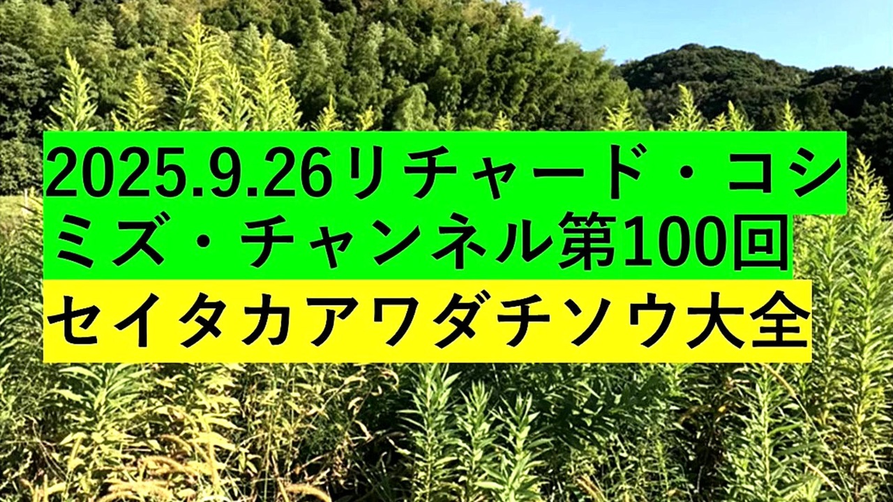 <span style="color: #cc0000;"><strong>◐『「 リチャード・コシミズ・チャンネル 」⦅ 第100回放送 ⦆⦅ 改良版 ⦆』</strong></span><br><br> <span style="color: #ff0000;"><strong>「『 セイタカアワダチソウ 大全 』」</strong></span><br><br> <span style="color: #38761d;"><strong>◐『 リチャード・コシミズ・チャンネル⦅ ニコニコ チャンネル ⦆』</strong></span><br> <span style="color: #0000ff;"><strong><a href="https://ch.nicovideo.jp/richardkoshimizu" target="_blank" rel="noopener nofollow">https://ch.nicovideo.jp/richardkoshimizu</a></strong></span><br><br> <span style="color: #38761d;"><strong>◐『 リチャード・コシミズ「 ニコニコ生放送⦅ LIVE ⦆」』</strong></span><br> <span style="color: #0000ff;"><strong><a href="https://www.nicovideo.jp/user/120930363/live_programs" target="_blank" rel="noopener nofollow">https://www.nicovideo.jp/user/120930363/live_programs</a></strong></span><br><br> <span style="color: #38761d;"><strong>◐『「 リチャード・コシミズ 講演会 」公式「 動画ギャラリー 」</strong></span><span style="color: #ff0000;"><strong>⦅ 最新動画 ⦆⦅ YouTube版 ⦆</strong></span><span style="color: #38761d;"><strong>』</strong></span><br> <span style="color: #0000ff;"><strong><a href="https://www.youtube.com/@richardkoshimizu-video-gallery" target="_blank" rel="noopener nofollow">https://www.youtube.com/@richardkoshimizu-video-gallery</a></strong></span><br><br> <span style="color: #38761d;"><strong>◐『 リチャード・コシミズ「 Rumble 」公式 動画ギャラリー 』</strong></span><br> <span style="color: #0000ff;"><strong><a href="https://rumble.com/user/richardkoshimizu" target="_blank" rel="noopener nofollow">https://rumble.com/user/richardkoshimizu</a></strong></span><br><br>
