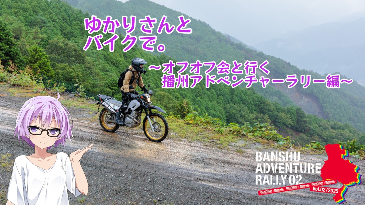 今回は2025年8月10日にオフオフ会の一員として参加した、播州アドベンチャーラリーの記録です。<br><br>…なんで雨なんですかね?オフオフ会を許さない!<br><br>イベントの詳細はこちらです。<br><a href="https://ren-x-mission.com/posts/2025-cross-mission-motorada%E6%92%AD%E5%B7%9E%E3%82%A2%E3%83%89%E3%83%99%E3%83%B3%E3%83%81%E3%83%A3%E3%83%BC%E3%83%A9%E3%83%AA%E3%83%BC/" target="_blank" rel="noopener nofollow">https://ren-x-mission.com/posts/2025-cross-mission-motorada%E6%92%AD%E5%B7%9E%E3%82%A2%E3%83%89%E3%83%99%E3%83%B3%E3%83%81%E3%83%A3%E3%83%BC%E3%83%A9%E3%83%AA%E3%83%BC/</a><br><br>前の動画:<a href="https://www.nicovideo.jp/watch/sm43601896" target="_blank" rel="noopener nofollow">https://www.nicovideo.jp/watch/sm43601896</a><br>撮影機材:<br>DJI Osmo Action4<br>iPhone16 Pro MAX<br><br>編集:AviUtl<br>お借りした立ち絵:<br>MtU様 結月ゆかりさん立ち絵素材ver4.0<br><a href="https://seiga.nicovideo.jp/seiga/im8124707" target="_blank" rel="noopener nofollow">https://seiga.nicovideo.jp/seiga/im8124707</a>