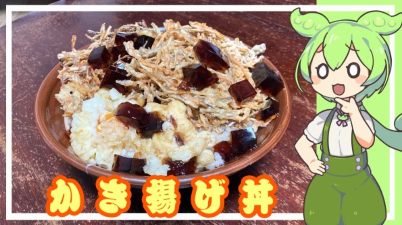 1か月ぶりくらいのお米美味すぎて脳汁出ますよ<br><br>前回→<a href="https://www.nicovideo.jp/watch/sm45427494" class="watch">sm45427494</a> 次回→<a href="https://www.nicovideo.jp/watch/sm45480630" class="watch">sm45480630</a><br><br>【材料】<br>〈かき揚げ・卵揚げ〉<br>・にんじん<br>・ゴボウ<br>・薄力小麦粉<br>・冷凍生卵<br>・卵(卵液用)<br>・冷水<br>・油<br>〈タレ〉<br>・しょうゆ<br>・みりん<br>・砂糖<br>・出汁<br /><br>レシピとか質問とか雑多に募集中<br><a href="https://marshmallow-qa.com/pwilzcacj1j87mz?t=6PAejL&utm_medium=url_text&utm_source=promotion" target="_blank" rel="noopener nofollow">https://marshmallow-qa.com/pwilzcacj1j87mz?t=6PAejL&utm_medium=url_text&utm_source=promotion</a><br><br>限界マイリスト<br><a href="https://www.nicovideo.jp/series/379506" target="_blank" rel="noopener nofollow">https://www.nicovideo.jp/series/379506</a><br><br>利用させてもらったもの<br>・ VOICEVOX:ずんだもん<br>立ち絵<br>・坂本アヒル氏<br><a href="https://seiga.nicovideo.jp/seiga/im10788496" target="_blank" rel="noopener nofollow">https://seiga.nicovideo.jp/seiga/im10788496</a><br>BGM<br>・ニコニコモンズ<br><a href="https://commons.nicovideo.jp/material/nc97718" target="_blank" rel="noopener nofollow">https://commons.nicovideo.jp/material/nc97718</a><br>各ずんだもん素材<br>・ずんだおばけ氏<br><a href="https://www.nicovideo.jp/user/124111720?rf=nvpc&rp=watch&ra=video_information" target="_blank" rel="noopener nofollow">https://www.nicovideo.jp/user/124111720?rf=nvpc&rp=watch&ra=video_information</a> <a href="https://www.youtube.com/@ZundaGhost" target="_blank" rel="noopener nofollow">https://www.youtube.com/@ZundaGhost</a><br>SE<br>・効果音ラボ<br><br>見てくれて感謝!<br>いいね・コメント・フォロー。マイリストも下さった方<br>ありがとうございます<br>・救援物資欲しいモノリスト<br><a href="https://www.amazon.co.jp/hz/wishlist/ls/2Q8W3EKKLTRVS?ref_=wl_fv_le" target="_blank" rel="noopener nofollow">https://www.amazon.co.jp/hz/wishlist/ls/2Q8W3EKKLTRVS?ref_=wl_fv_le</a><br>・お手紙とか干し芋から送れないものはこちら<br><a href="https://ouen55.com/sentwin5496/" target="_blank" rel="noopener nofollow">https://ouen55.com/sentwin5496/</a><br>