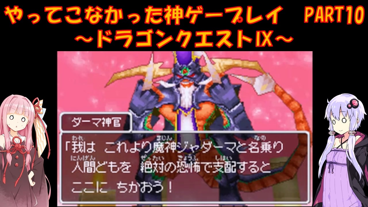 ニンテンドーDS ドラゴンクエストⅨをプレイ<br>ゆかりさんはメジャーじゃないゲームをやる俺カッケー族だったのでドラクエをやったことがありませんでした(DSのⅤ以外)<br><br>ゆ:ダーマの神官の姿かこれが<br>茜:職じゃなくて首を転がしてきそうやな<br><br>PART1:<a href="https://www.nicovideo.jp/watch/sm45383595" target="_blank" rel="noopener nofollow">https://www.nicovideo.jp/watch/sm45383595</a><br><br>各DQシリーズ再生リスト<br><a href="https://garage.nicovideo.jp/niconico-garage/video/series/390298" target="_blank" rel="noopener nofollow">https://garage.nicovideo.jp/niconico-garage/video/series/390298</a><br><br>動画内で使用させていただいた素材<br>【イラスト】<br>結月ゆかり→ペテン師様:<a href="https://seiga.nicovideo.jp/seiga/im5494168" target="_blank" rel="noopener nofollow">https://seiga.nicovideo.jp/seiga/im5494168</a><br>琴葉茜→ユメのオワリ様:<a href="https://seiga.nicovideo.jp/seiga/im10706241" target="_blank" rel="noopener nofollow">https://seiga.nicovideo.jp/seiga/im10706241</a><br><br>【音声】<br>A.I.Voice:琴葉茜<br><a href="https://aivoice.jp/product/kotonoha/" target="_blank" rel="noopener nofollow">https://aivoice.jp/product/kotonoha/</a><br><br>A.I.Voice:結月ゆかり<br><a href="https://aivoice.jp/product/yukari/" target="_blank" rel="noopener nofollow">https://aivoice.jp/product/yukari/</a><br><br>【その他素材】<br><br>この動画で利用している株式会社スクウェア・エニックスを代表とする共同著作者が権利を所有する著作物及びスギヤマ工房有限会社が権利を所有する楽曲の転載・配布は禁止いたします。<br>© 2009 ARMOR PROJECT/BIRD STUDIO/LEVEL-5/SQUARE ENIX All Rights Reserved.<br>© SUGIYAMA KOBO<br>Ⓟ SUGIYAMA KOBO