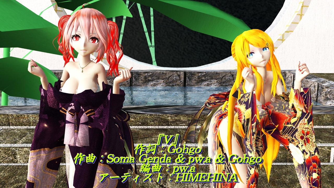 🎥 Motion / Camera Motion<br>配布元:<a href="https://bowlroll.net/file/338055" target="_blank" rel="noopener nofollow">https://bowlroll.net/file/338055</a><br>🎶 Music<br>『V』/HIMEHINA<br>作詞:Gohgo<br>作曲:Soma Genda & pw.a & Gohgo<br>編曲:pw.a<br>MV:<a href="https://youtu.be/7oE8YnXumMk" target="_blank" rel="noopener nofollow">https://youtu.be/7oE8YnXumMk</a><br>Dance:<a href="https://youtu.be/HFGY_teEtYM" target="_blank" rel="noopener nofollow">https://youtu.be/HFGY_teEtYM</a><br>HIMEHINA Channel:<a href="https://www.youtube.com/channel/UCFv2z4iM5vHrS8bZPq4fHQQ" target="_blank" rel="noopener nofollow">https://www.youtube.com/channel/UCFv2z4iM5vHrS8bZPq4fHQQ</a><br>👘 Model<br>Tda式改変 重音テト Japanese Kimono Style(改変:柳美亜[@mia])<br>Tda式改変 鏡音リン(大人リン)Japanese Kimono Style(改変:柳未亜[@mia])<br>💎 Accessory<br>フラワーネックレス/ねこる様(<a href="https://seiga.nicovideo.jp/seiga/im4144872" target="_blank" rel="noopener">im4144872</a>)<br>🏯 Stage<br>樓梯間様:<a href="https://youtu.be/PBGsZdiOeXM" target="_blank" rel="noopener nofollow">https://youtu.be/PBGsZdiOeXM</a><br>💡 Shader<br>サンドマン様:sdPBR480(<a href="https://www.nicovideo.jp/watch/sm43948524" class="watch">sm43948524</a>)<br>✨ Effect<br>そぼろ様:<a href="https://www.nicovideo.jp/watch/sm19123817" class="watch">sm19123817</a> / <a href="https://seiga.nicovideo.jp/seiga/im3061709" target="_blank" rel="noopener">im3061709</a> / <a href="https://www.nicovideo.jp/watch/sm16087751" class="watch">sm16087751</a><br>おたもん様:<a href="https://seiga.nicovideo.jp/seiga/im1763840" target="_blank" rel="noopener">im1763840</a> / <a href="https://seiga.nicovideo.jp/seiga/im1561862" target="_blank" rel="noopener">im1561862</a><br>🛠️ Tool<br>VmdSizing_5.01.08_64bit:<a href="https://seiga.nicovideo.jp/seiga/im9755721" target="_blank" rel="noopener nofollow">https://seiga.nicovideo.jp/seiga/im9755721</a><br>3Dミクを躍らせるツールを自作してみた:<a href="https://www.nicovideo.jp/watch/sm2420025" target="_blank" rel="noopener nofollow">https://www.nicovideo.jp/watch/sm2420025</a><br>MikuMikuPlus v1.7.1:<a href="https://www.nicovideo.jp/watch/sm34761249" target="_blank" rel="noopener nofollow">https://www.nicovideo.jp/watch/sm34761249</a><br>エフェクトファイルを読めるようにしてみた:<a href="https://www.nicovideo.jp/watch/sm12149815" target="_blank" rel="noopener nofollow">https://www.nicovideo.jp/watch/sm12149815</a><br>🎬 Video Editing<br>Wondershare Filmora 14:<a href="https://filmora.wondershare.jp/" target="_blank" rel="noopener nofollow">https://filmora.wondershare.jp/</a><br>📢 注意事項<br>この動画は転載禁止です。<br>This video may not be reproduced.<br>이 동영상은 무단 전재를 금합니다.<br>本视频不得复制。