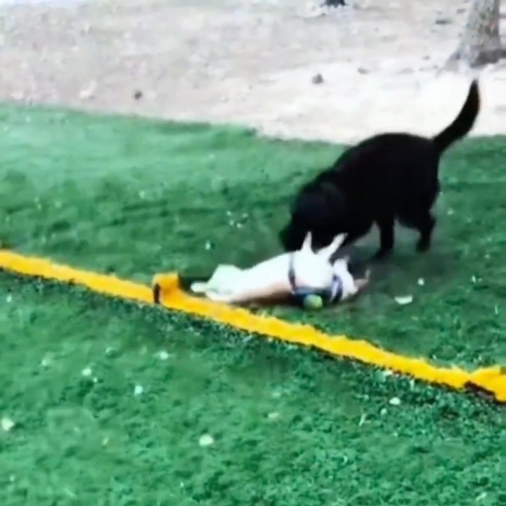 ホモと見る友達が出来ない犬の遊び相手になる子犬
