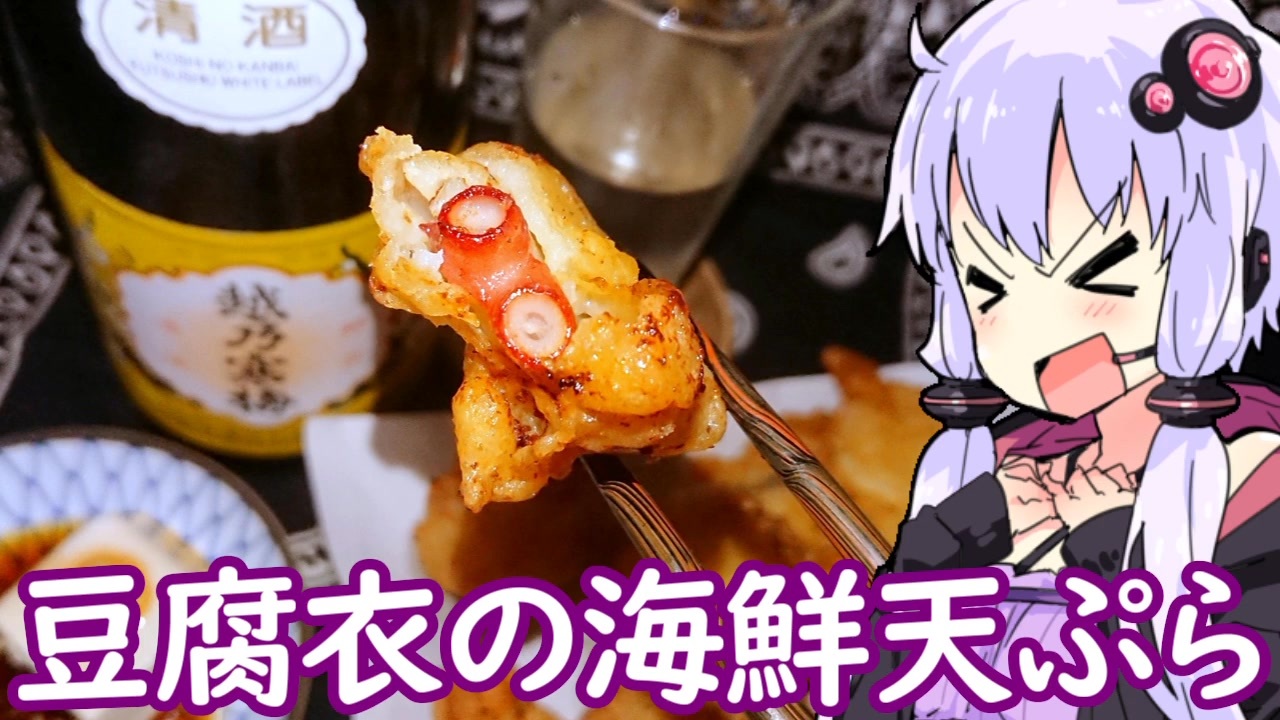 シロネコさんの『ニコ酒の日2025』(告知→<a href="https://www.nicovideo.jp/watch/sm45237449" class="watch">sm45237449</a>)と<br>T.N.Chaosさんの『豆腐祭り一丁目!!』(告知→<a href="https://www.nicovideo.jp/watch/sm44986799" class="watch">sm44986799</a>)に便乗参加。<br><br>冷凍庫のヌシになりかけてる魚介を<br>お豆腐の衣の天ぷらに仕立てて<br>絵にかいたような端麗辛口で優勝!