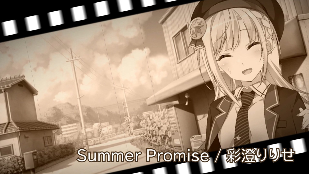 vocal: Synthesizer V 2 AI 彩澄りりせ<br><br>---<br>君と見上げた雲 夏空澄んで<br>終わらない夏はない わかってるけど<br>君との一瞬を胸に抱いて<br>明日へ向かうよ Summer promise<br><br>Summer light, summer dream<br>Fly so high, shining bright<br>Summer light, summer dream<br>Never fade, hold it tight<br>Summer light, summer dream<br>Through the sky, endless time<br>Feel the breeze, set me free<br>Summer promise<br><br>二人過ごした日々 すべて覚えてる<br>終わらない時はない わかってるけど<br>再会の約束 指交わして<br>二人出会うよ Summer promise<br><br>Summer night, stay with me<br>Stars align, memory<br>Summer night, stay with me<br>Echoes fade, melody<br>Summer night, stay with me<br>Tears fall silently<br>Stay with me, close to me<br>Summer promise