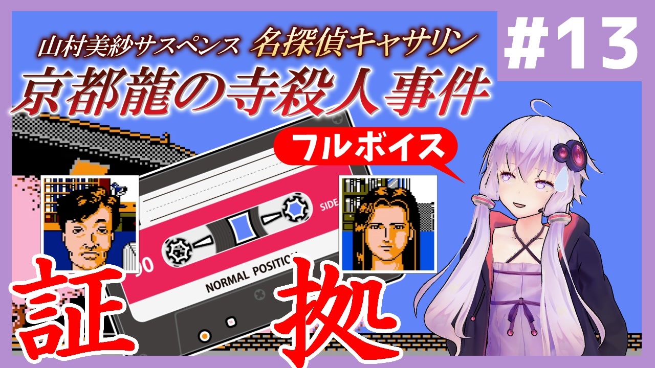 毎週金曜21時投稿です!<br>※当動画にはネタバレが含まれます。ご注意ください。<br><br>ラストスパート!!!<br><br>リンク<br>------<br>前 : <a href="https://www.nicovideo.jp/watch/sm45446963" class="watch">sm45446963</a><br>次 : <a href="https://www.nicovideo.jp/watch/sm45497032" class="watch">sm45497032</a><br><br>シリーズ : <a href="https://www.nicovideo.jp/series/523490" target="_blank" rel="noopener">series/523490</a><br><br>YouTube : <a href="https://www.youtube.com/@YuzukingtonYukari" target="_blank" rel="noopener nofollow">https://www.youtube.com/@YuzukingtonYukari</a><br><br>チャプター<br>----------<br><a href="#" class="seekTime" data-seekTime="0:00" onclick="seekNicoPlayer('#0:00'); return false;">#0:00</a> OP<br><a href="#" class="seekTime" data-seekTime="0:32" onclick="seekNicoPlayer('#0:32'); return false;">#0:32</a> [解説]人物の整理<br> <a href="#" class="seekTime" data-seekTime="1:00" onclick="seekNicoPlayer('#1:00'); return false;">#1:00</a> 人物関係(前回までと同等の内容)<br> <a href="#" class="seekTime" data-seekTime="1:25" onclick="seekNicoPlayer('#1:25'); return false;">#1:25</a> 事件に関係する話(前回までと同等の内容)<br><a href="#" class="seekTime" data-seekTime="2:40" onclick="seekNicoPlayer('#2:40'); return false;">#2:40</a> [解説]捜査内容の整理<br><a href="#" class="seekTime" data-seekTime="5:16" onclick="seekNicoPlayer('#5:16'); return false;">#5:16</a> 捜査開始~自分の部屋<br><a href="#" class="seekTime" data-seekTime="5:38" onclick="seekNicoPlayer('#5:38'); return false;">#5:38</a> 尾沢家<br> <a href="#" class="seekTime" data-seekTime="6:15" onclick="seekNicoPlayer('#6:15'); return false;">#6:15</a> 菜美子の部屋<br> <a href="#" class="seekTime" data-seekTime="8:54" onclick="seekNicoPlayer('#8:54'); return false;">#8:54</a> 皆男の部屋<br> <a href="#" class="seekTime" data-seekTime="11:22" onclick="seekNicoPlayer('#11:22'); return false;">#11:22</a> 百合子の部屋<br><a href="#" class="seekTime" data-seekTime="12:36" onclick="seekNicoPlayer('#12:36'); return false;">#12:36</a> 自分の部屋<br><a href="#" class="seekTime" data-seekTime="14:01" onclick="seekNicoPlayer('#14:01'); return false;">#14:01</a> カフェ・ド・ミサ<br><a href="#" class="seekTime" data-seekTime="21:01" onclick="seekNicoPlayer('#21:01'); return false;">#21:01</a> 天龍寺<br><a href="#" class="seekTime" data-seekTime="22:33" onclick="seekNicoPlayer('#22:33'); return false;">#22:33</a> 法雲寺<br><a href="#" class="seekTime" data-seekTime="25:38" onclick="seekNicoPlayer('#25:38'); return false;">#25:38</a> 自分の部屋<br><a href="#" class="seekTime" data-seekTime="26:07" onclick="seekNicoPlayer('#26:07'); return false;">#26:07</a> ED<br><br>ゲーム<br>------<br>山村美紗サスペンス 京都龍の寺殺人事件 - ファミリー・コンピュータ (FC)<br><br>出演者<br>------<br>実況・解説・主人公<br> CV : VOICEROID:結月ゆかり<br>キャサリン・ターナー<br> CV : VOICEVOX:もち子(cv 明日葉よもぎ)<br>尾沢菜美子<br> VOICEVOX:九州そら<br>小沢皆男<br> VOICEVOX:剣崎雌雄<br>一般男性<br> CV : VOICEVOX:白上虎太郎<br>一般女性<br> CV : VOICEVOX:四国めたん<br>